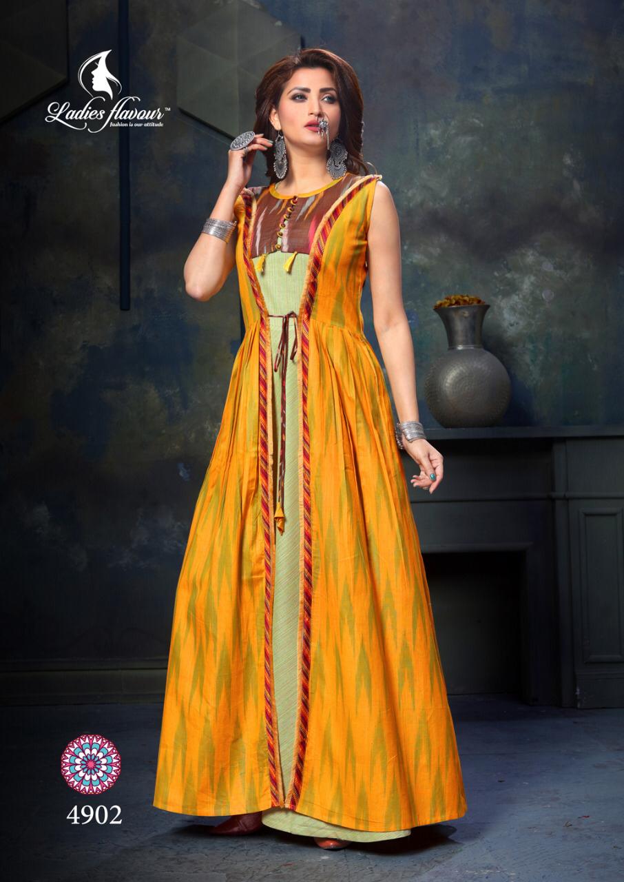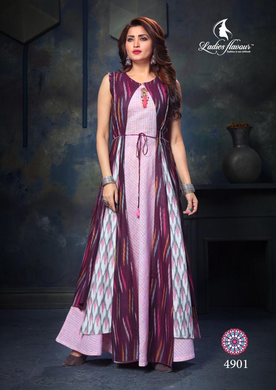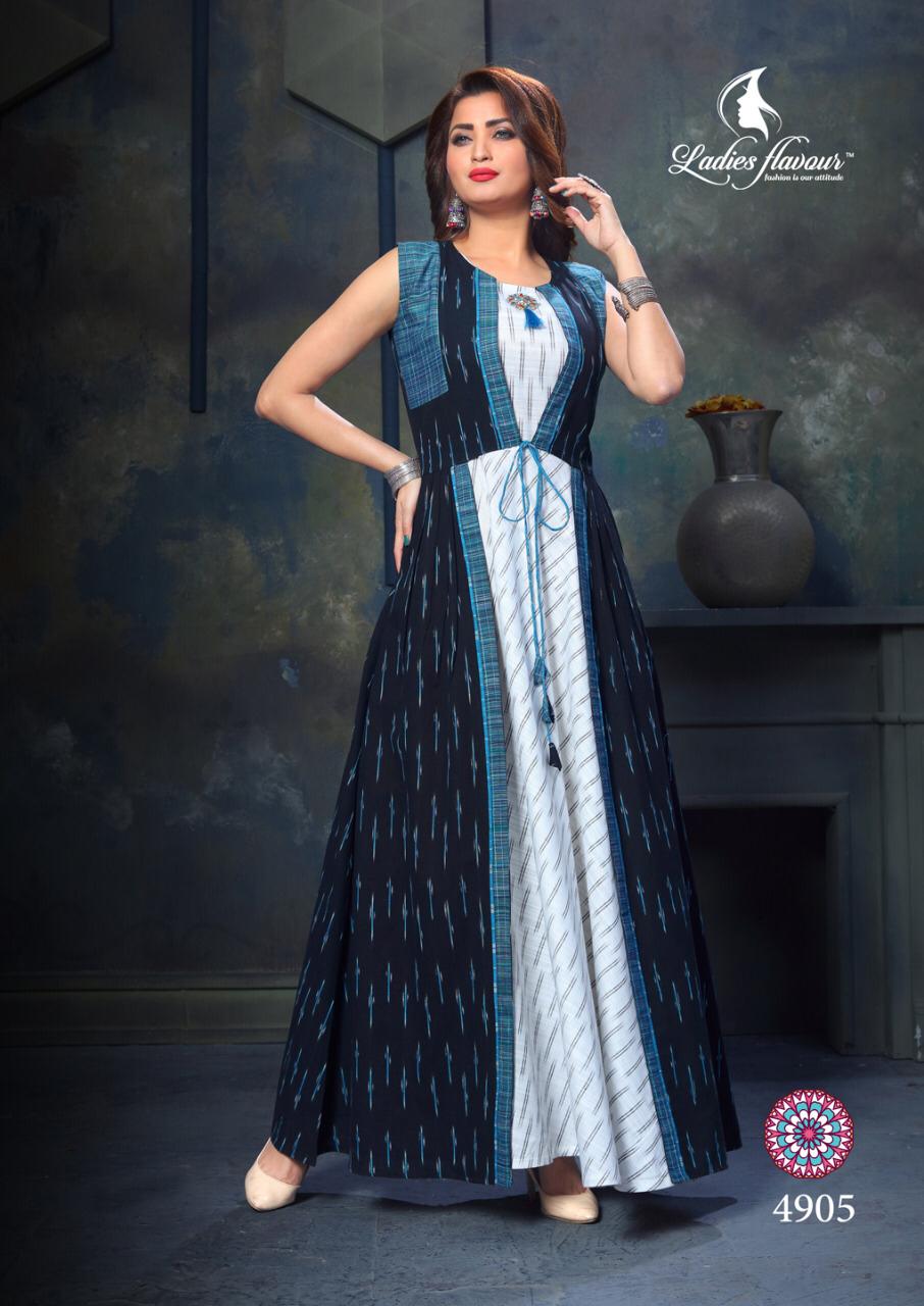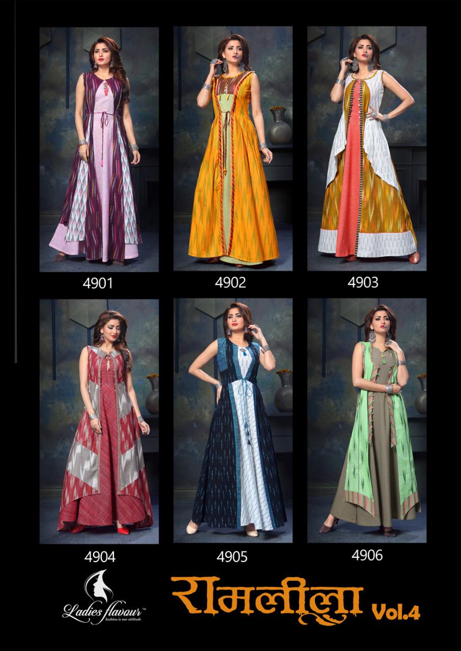Ladies Flavour Ramleela Vol 4 South Cotton Long Gown Style Kurti Wholesaler