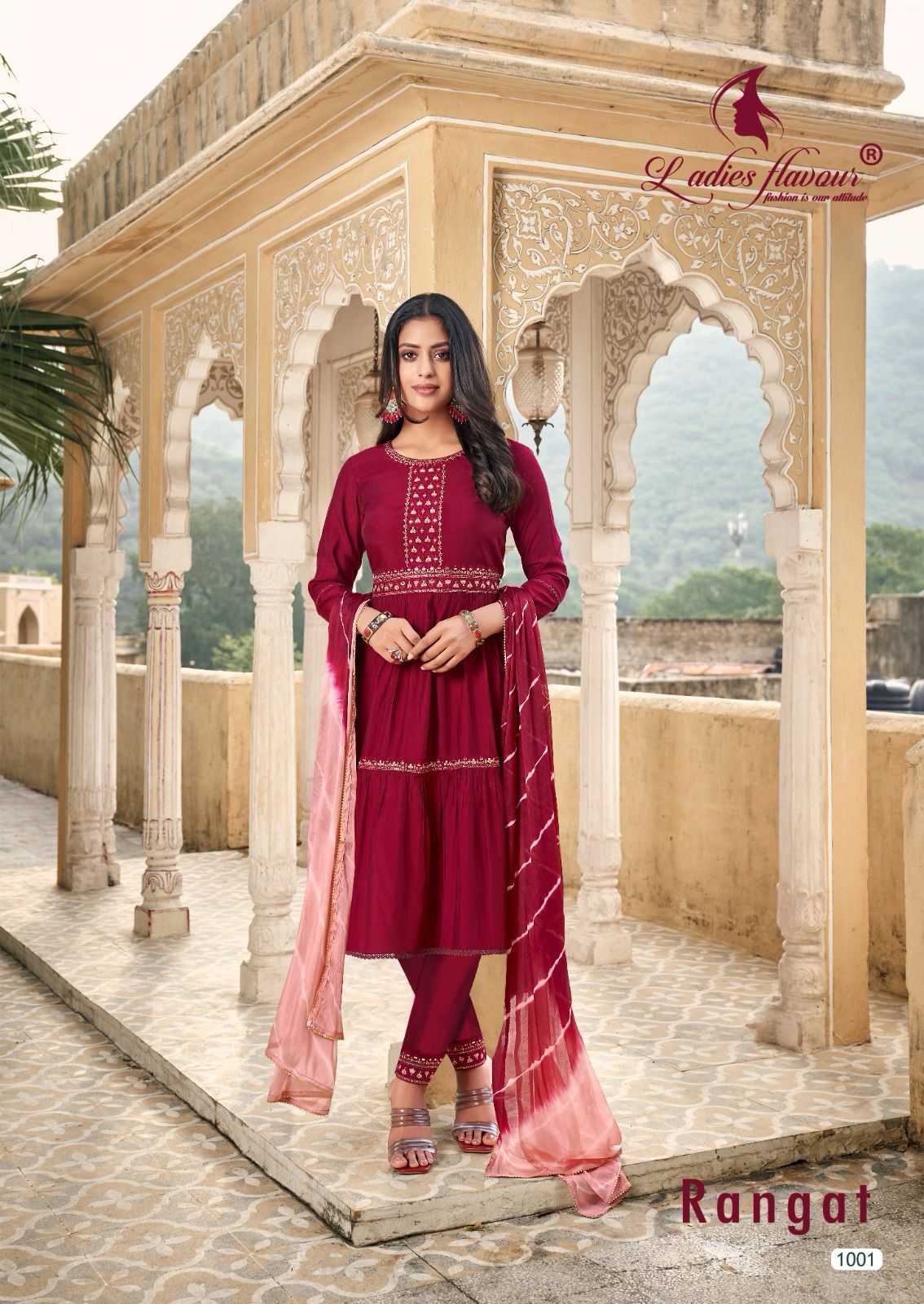 ladies flavour rangat classy readymade kurti pant with dupatta