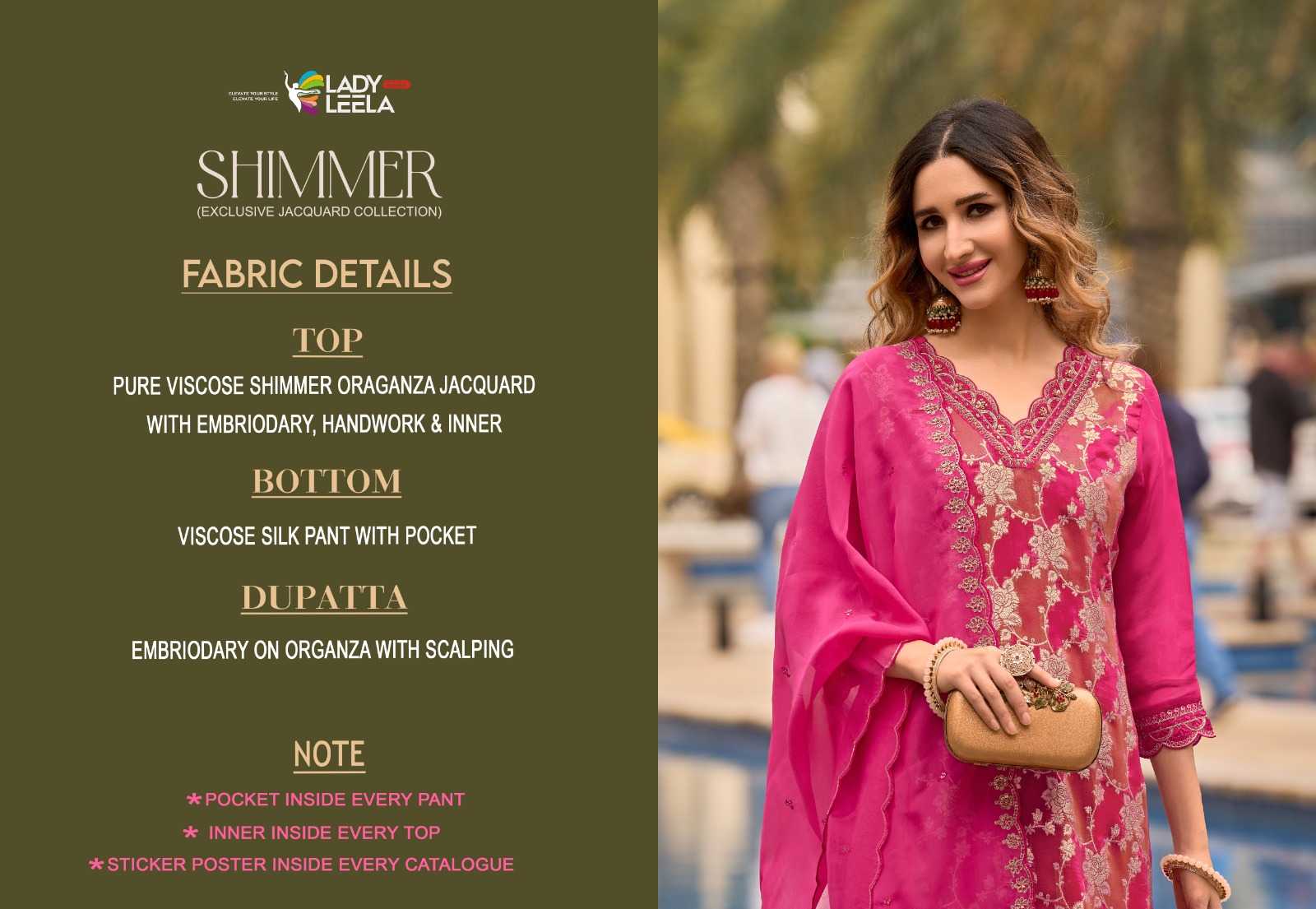 👑 LADY LEELA 👑 ———SHIMMER———. _(EXCLUSIVE JACQUARD COLLECTION) _ BOTTOM👖 - Viscose Silk Pant with Pocket DUPATTA 🏳️🌈 - Embriodary on Organza with Scalping SIZES - M, L, XL, XXL, 3XL RATE- 1545/- NOTE- “ELEVATE UR STYLE ⏰LIMITED STOCK⏰ |