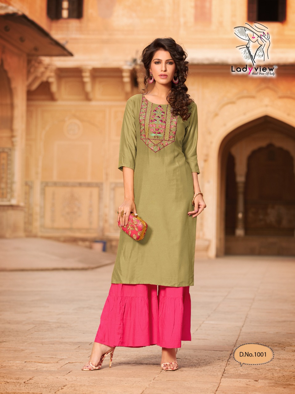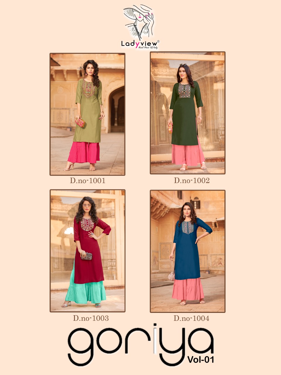 Ladyview Launch Goriya Rayon Designer Kurti With Sharara Collection
