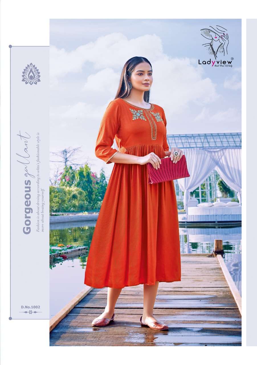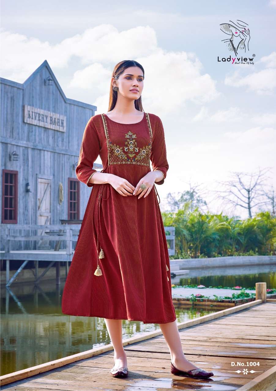 ladyview mahek rayon embroidery ladies special kurti exporter