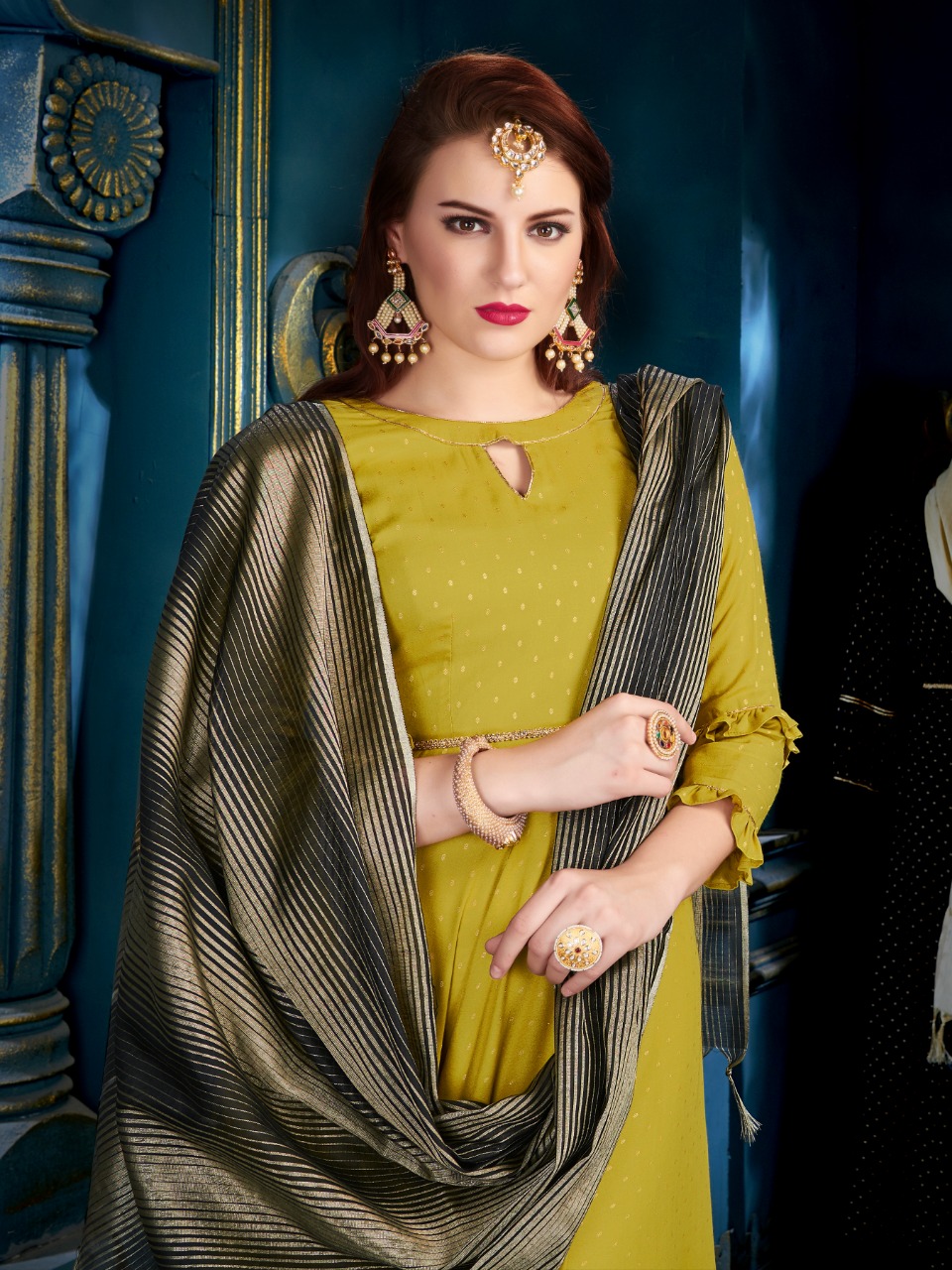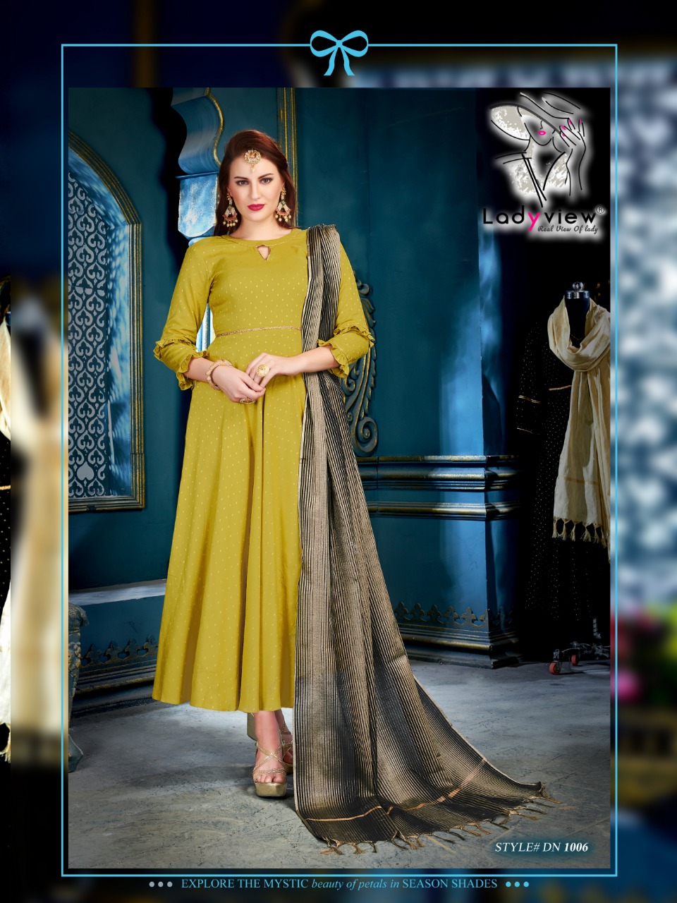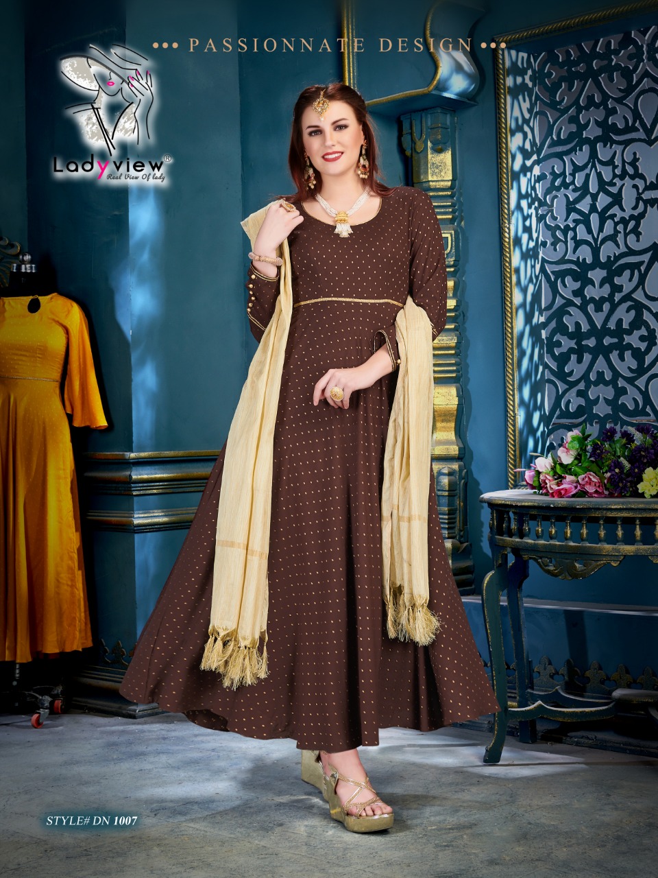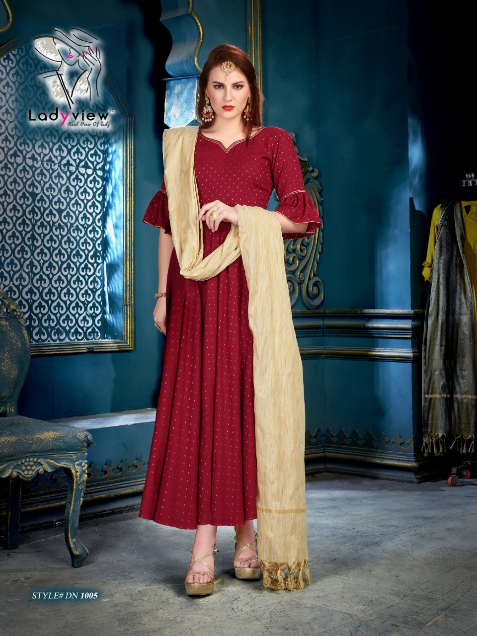 Ladyview Present Manohari Weaving Rayon Kurti With Banarasi Dupatta Trader