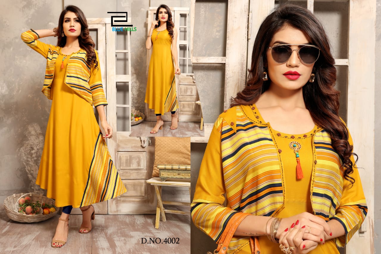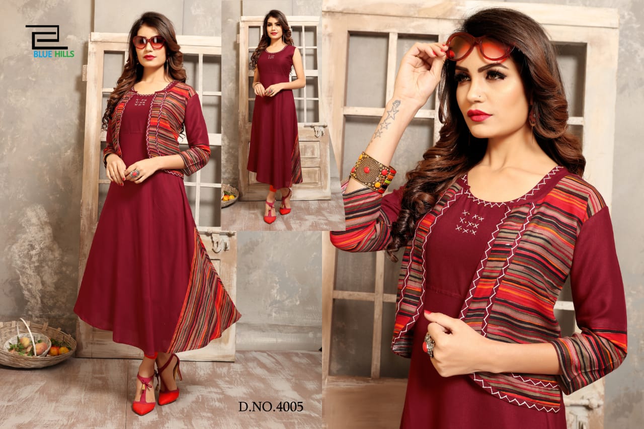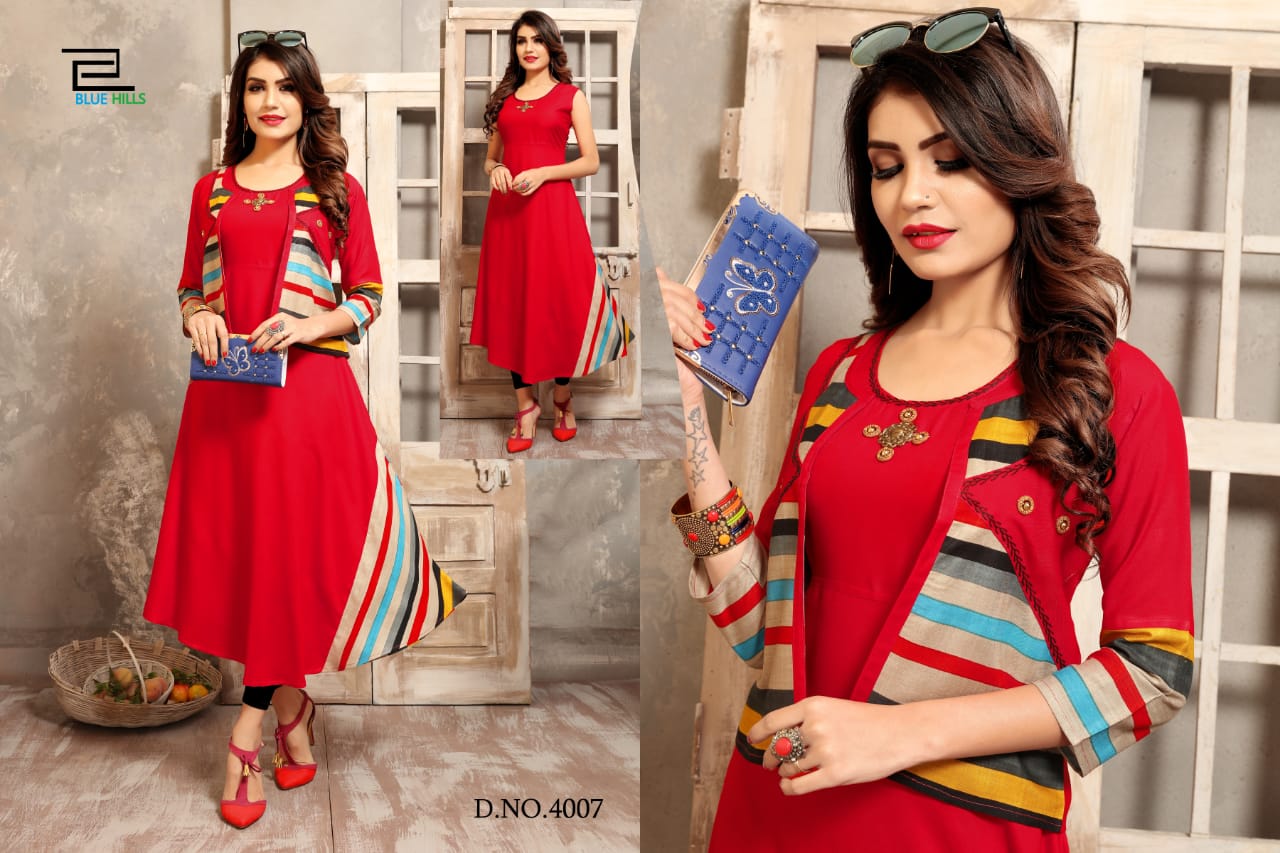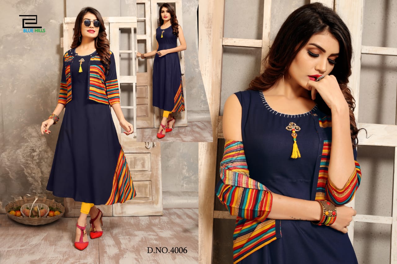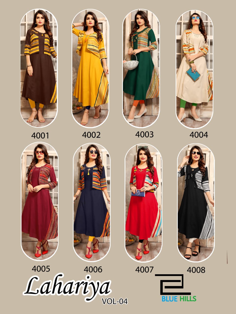 Lahariya Vol 4 By Blue Hills Rayon Kurti With Jacket Combination