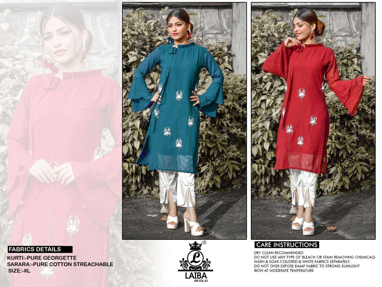 laiba am vol 93 georgette pakistani kurti with fancy bottom supplier