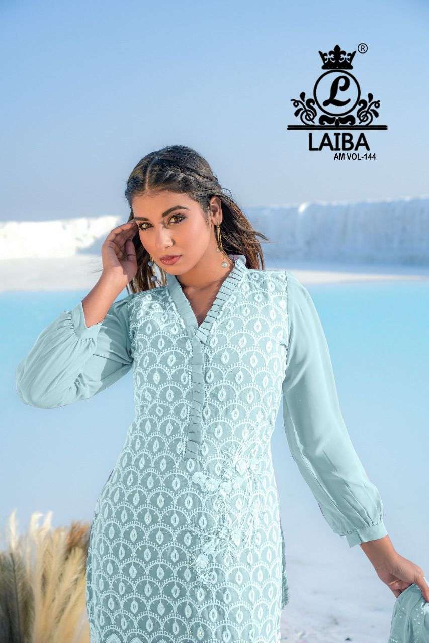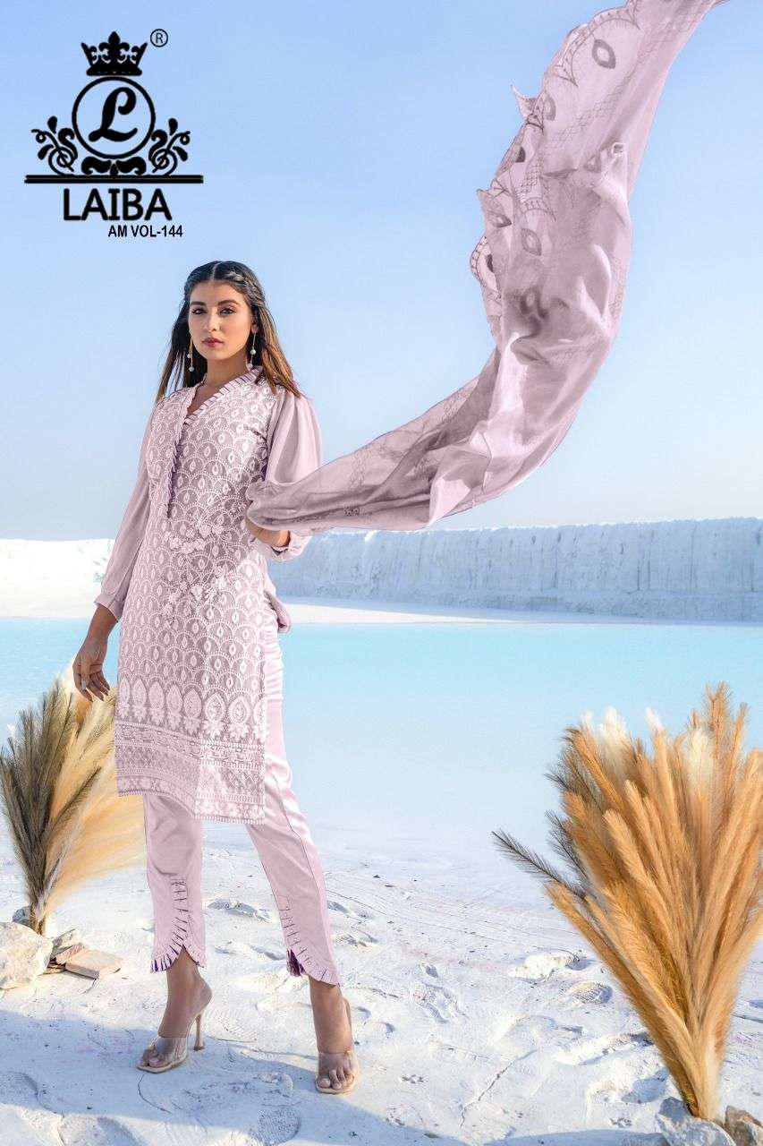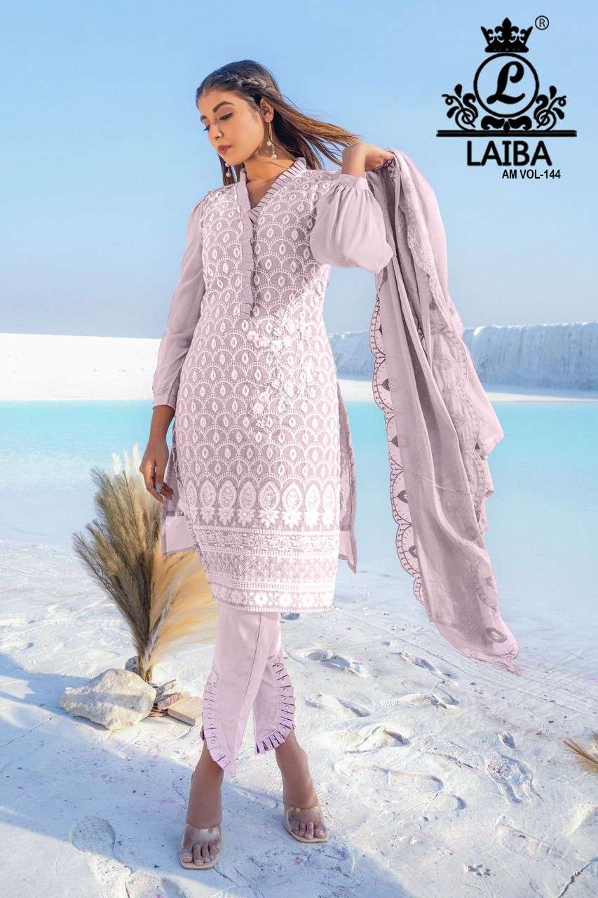 laiba designer am vol 144 georgette pakistani fully stitch 3 piece designs