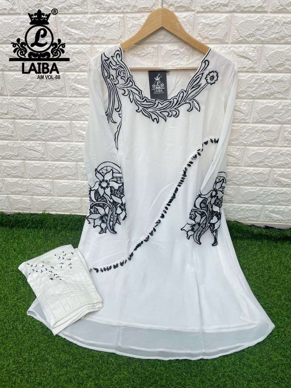 laiba designer am vol 88 georgette pakistani readymade kurti with pant