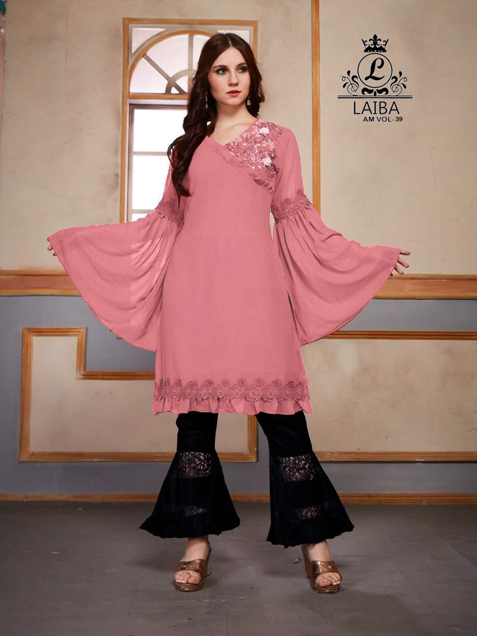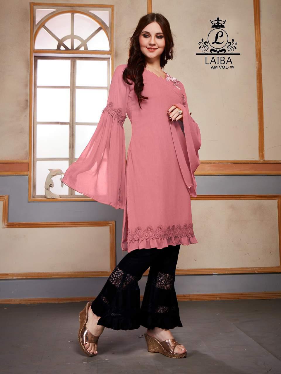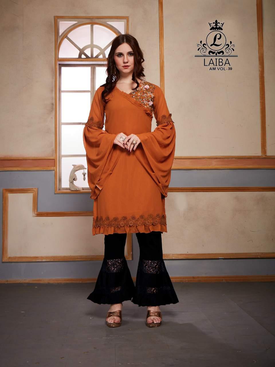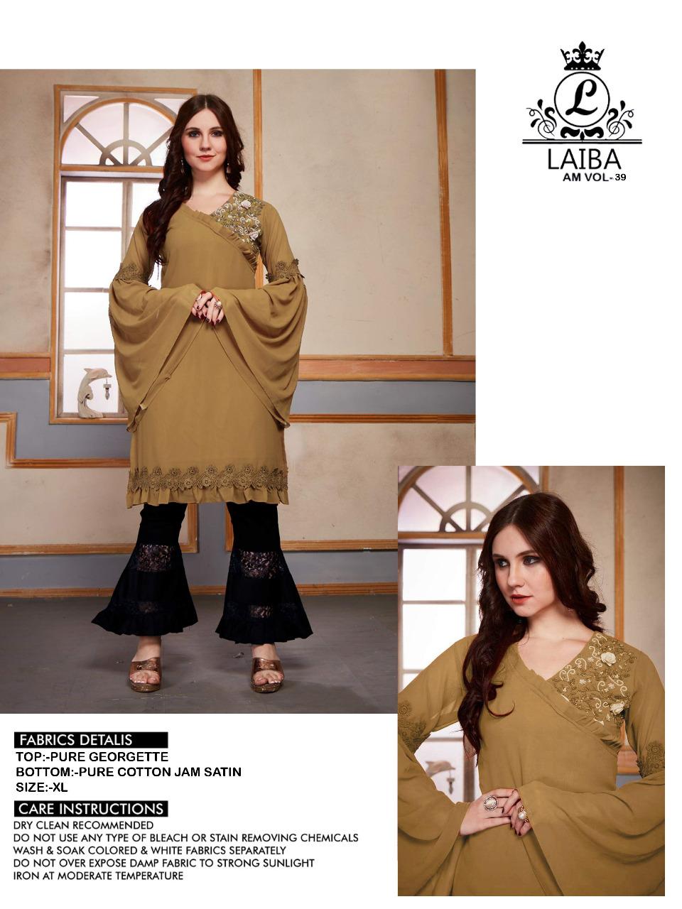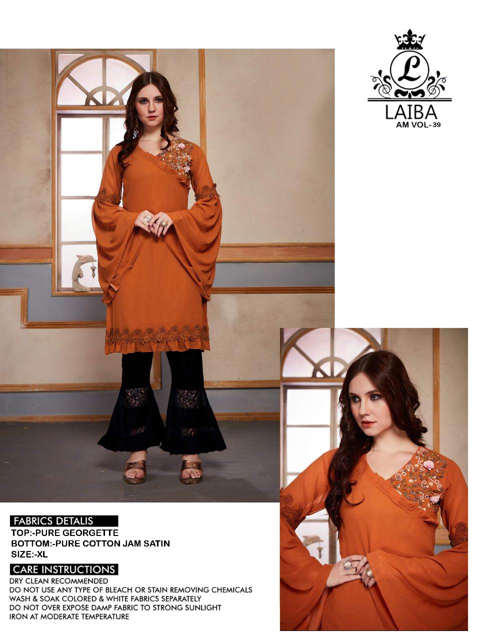 Laiba Designer Studio Am Vol 39 Pure Georgette Kurti With Cotton Satin Cigarette Pant