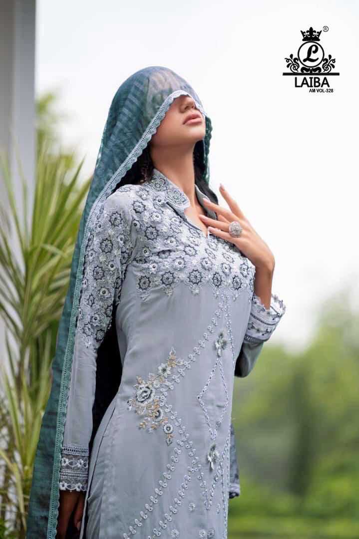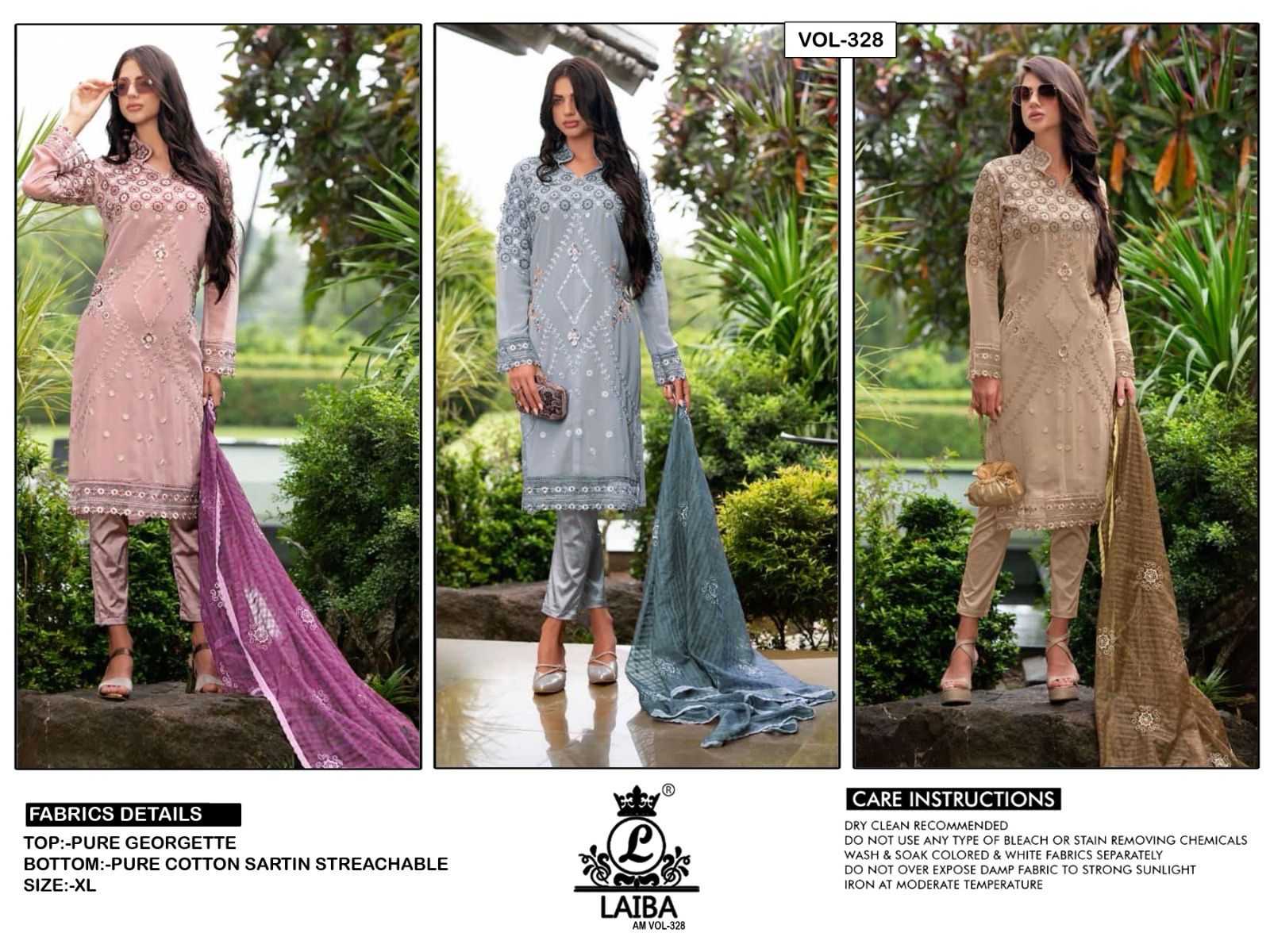 laiba designer vol 328 exclusive georgette full stitch pakistani 3pcs dress