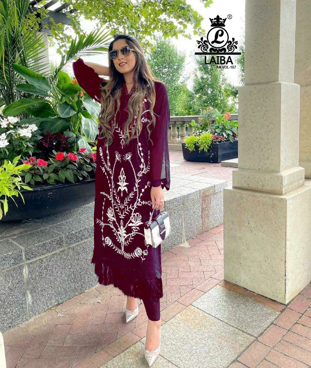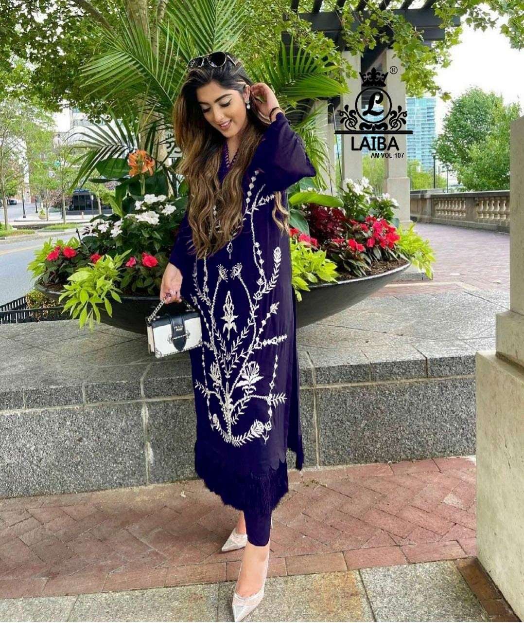 laiba vol 107 georgette embroidery exclusive readymade long top with bottom