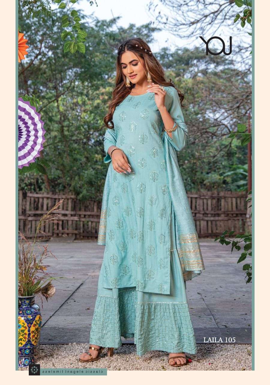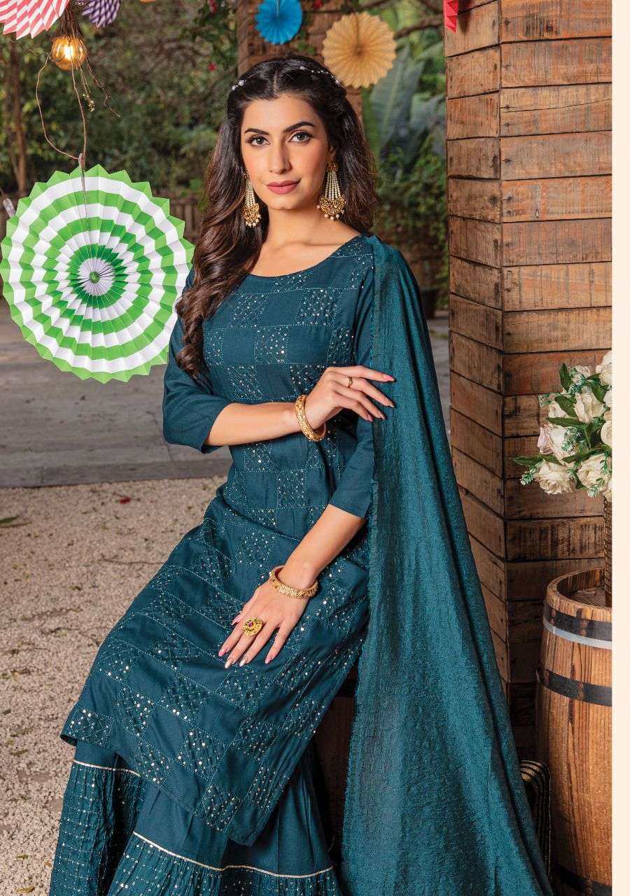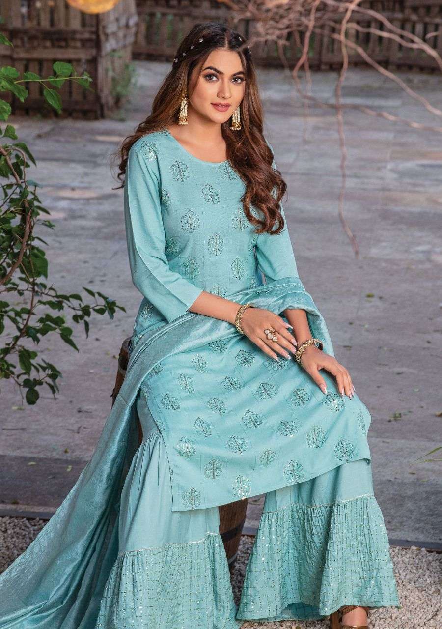 laila by you wanna pura rayon readymade kurti with sharara & dupatta