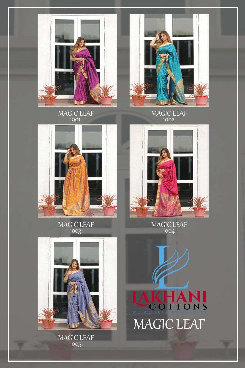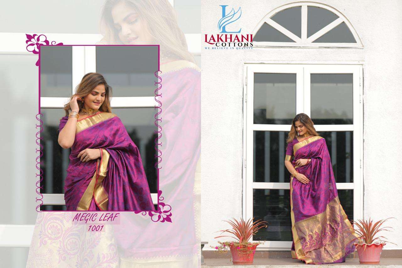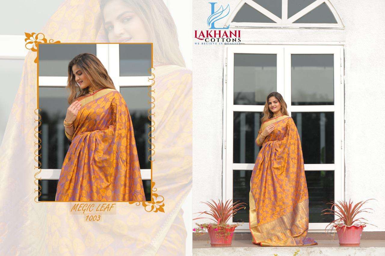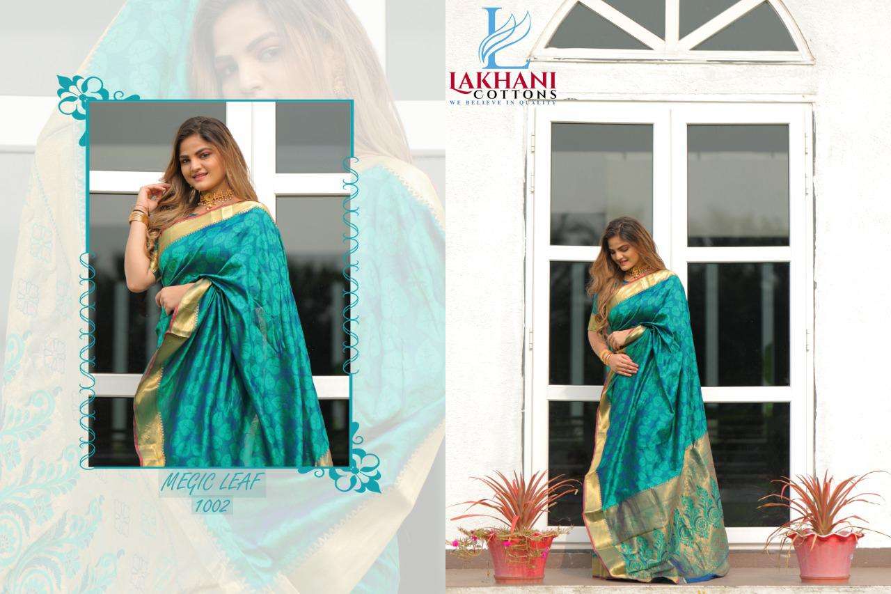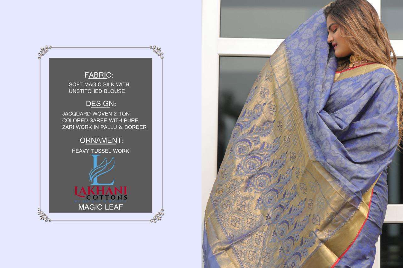 lakhani cottons magic leaf silk with jacquard fancy work sarees