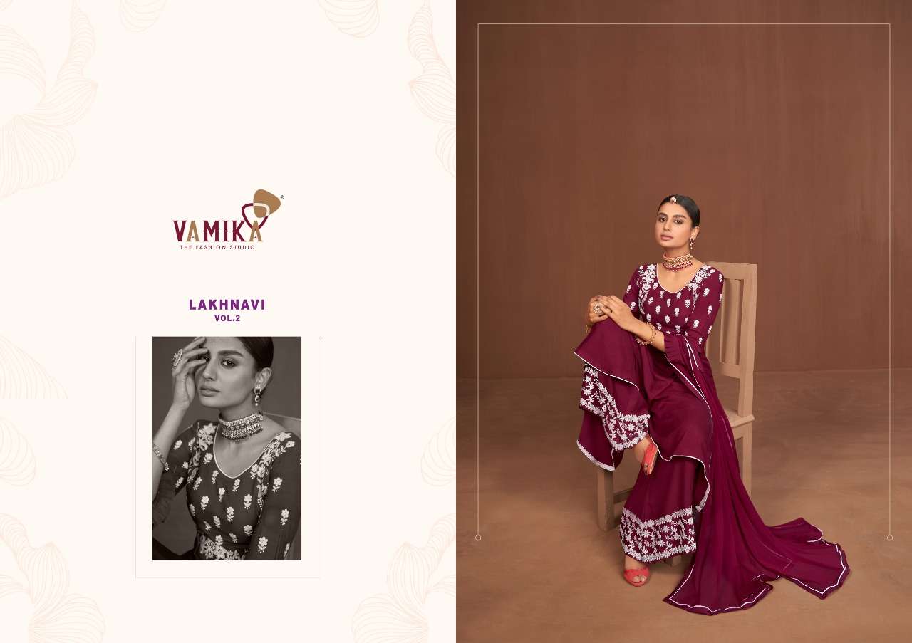 lakhnawi vol 2 by vamika rayon designer readymade plazzo style suits