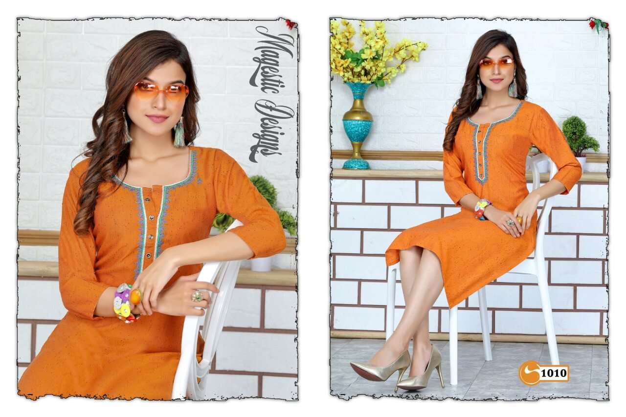 IN STOCK Model:tt-lamhe Weight:4.00kg MOQ:10 Pcs Fabric: 140 gm reyeon Work: Embroidery Type: LONG STRAIGHT KURTI Size L XL 2XL |