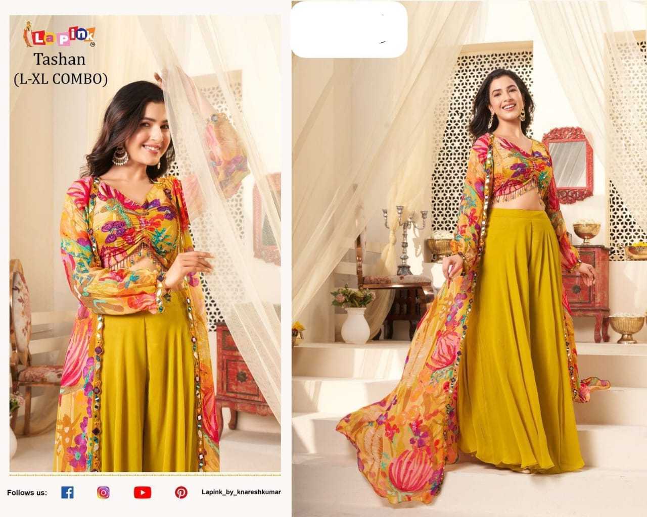 lapink 3pc readymade dresses sharara gown indo western plazzo crop top designs wholesale & exports
