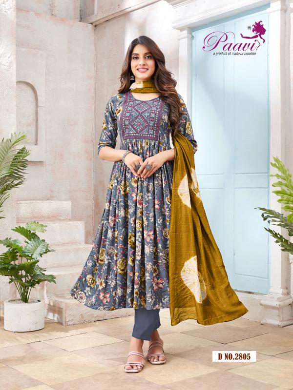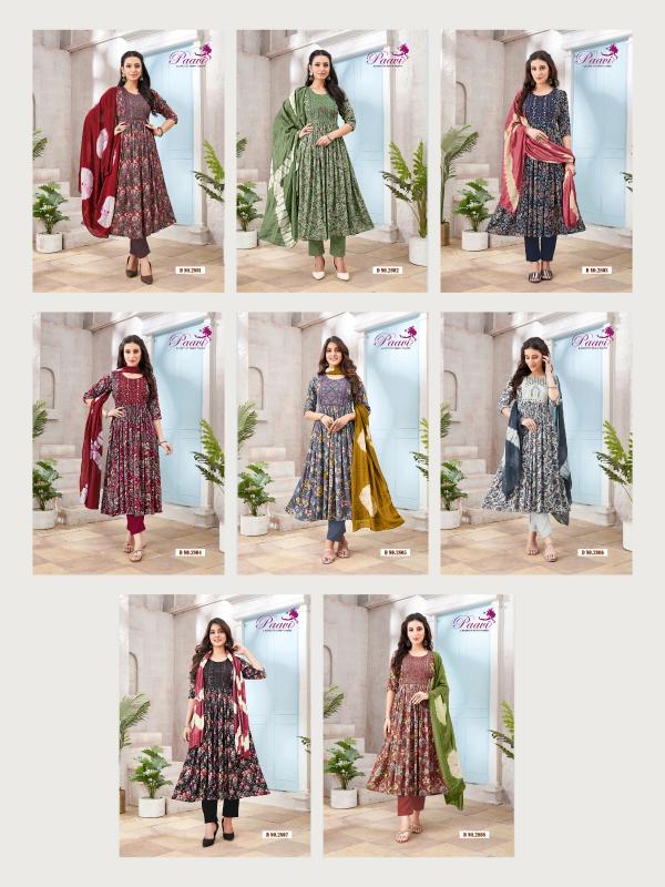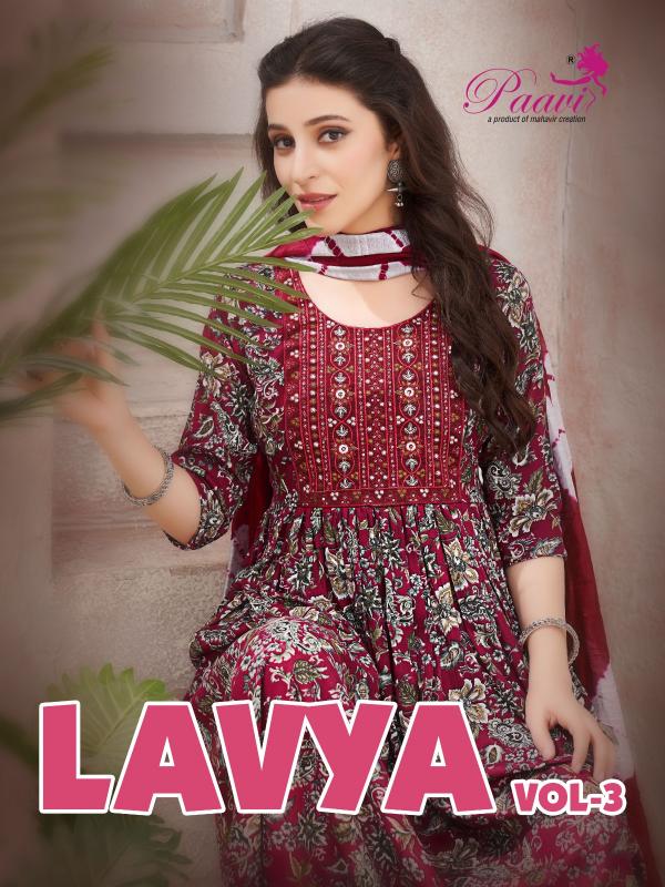 lavya vol 3 by paavi unique heavy print rinkle readymade umbrella 3pcs suits