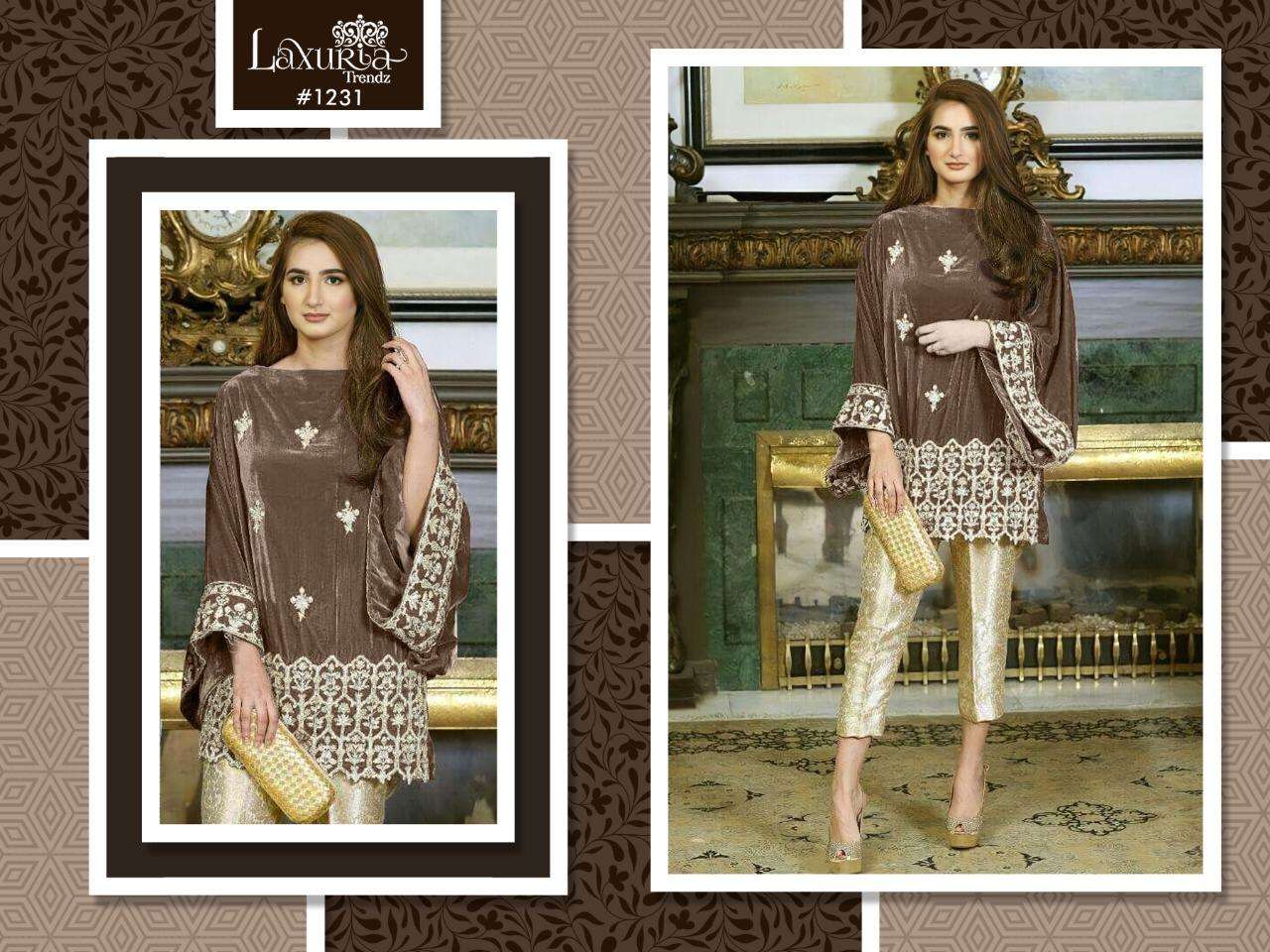 laxuria 1231 velvet readymade pakistani kurti with pant wholesaler