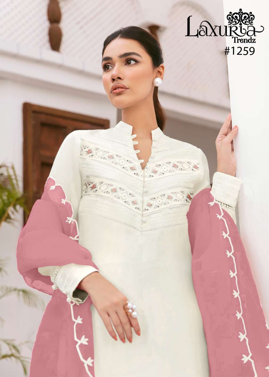 laxuria 1259 designer 3pcs glamours look pakistani kurti with pant and dupatta