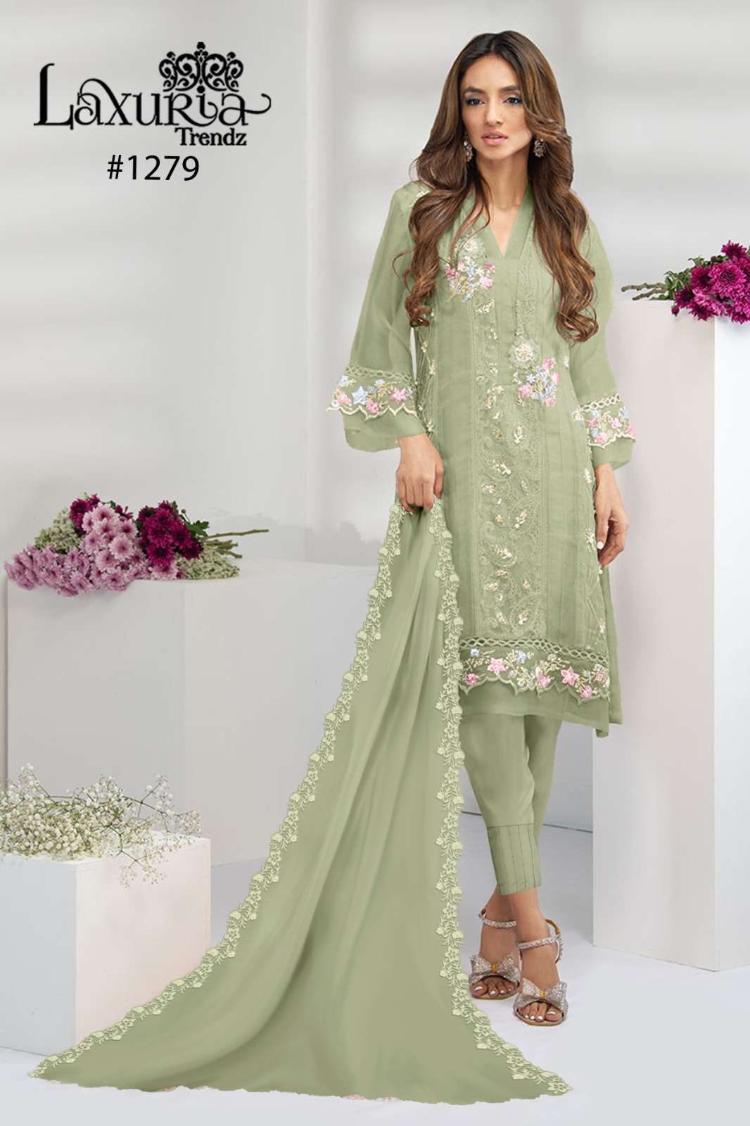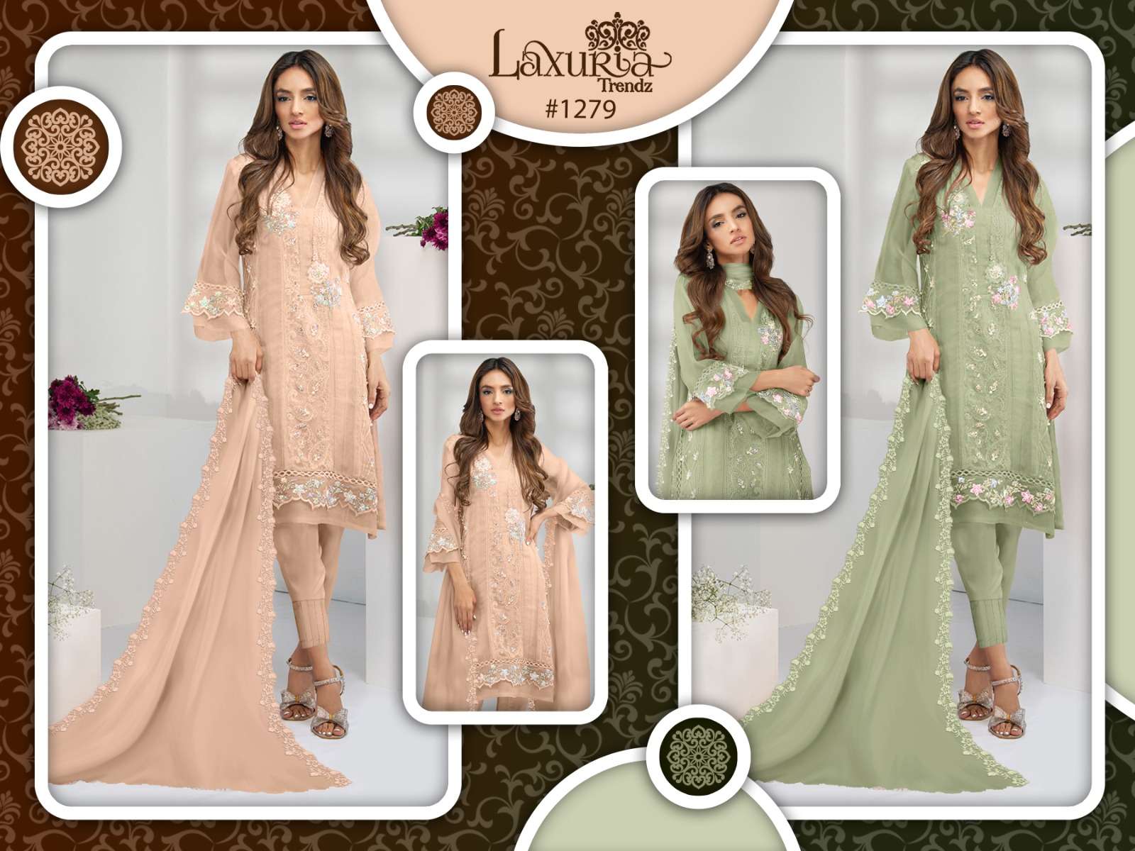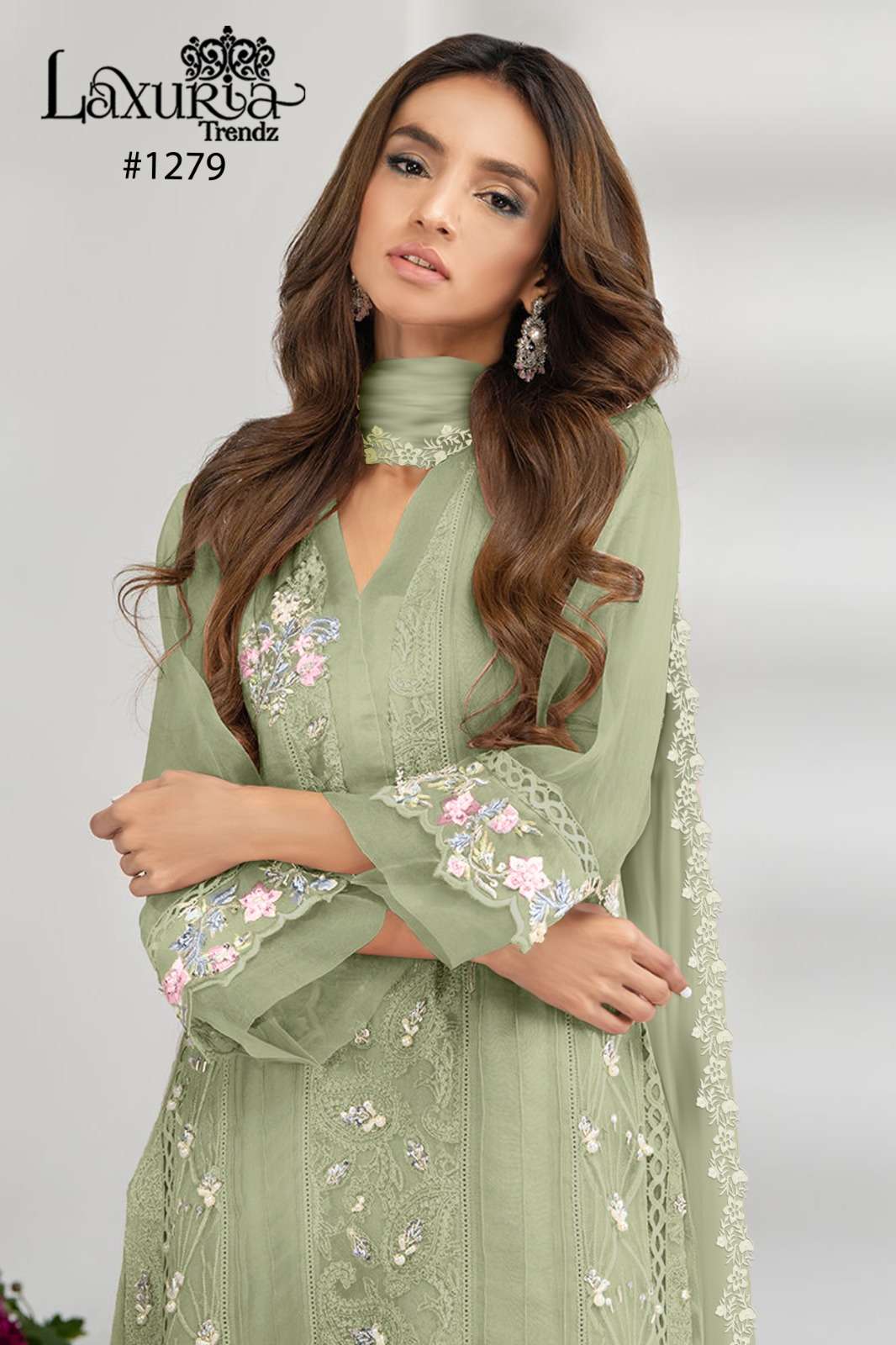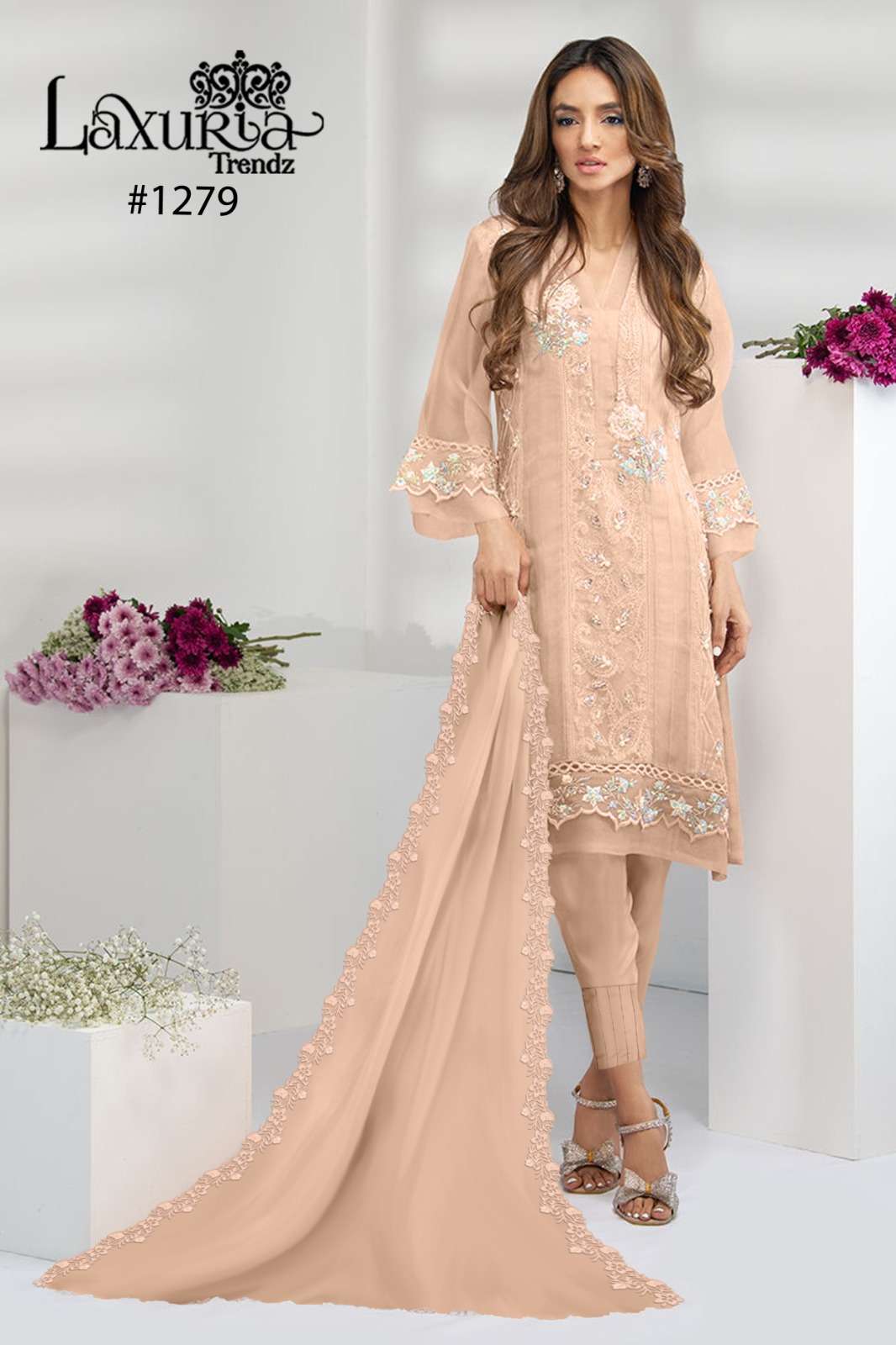 laxuria 1279 party wear pakistani fullstitch top bottom with naznin dupatta