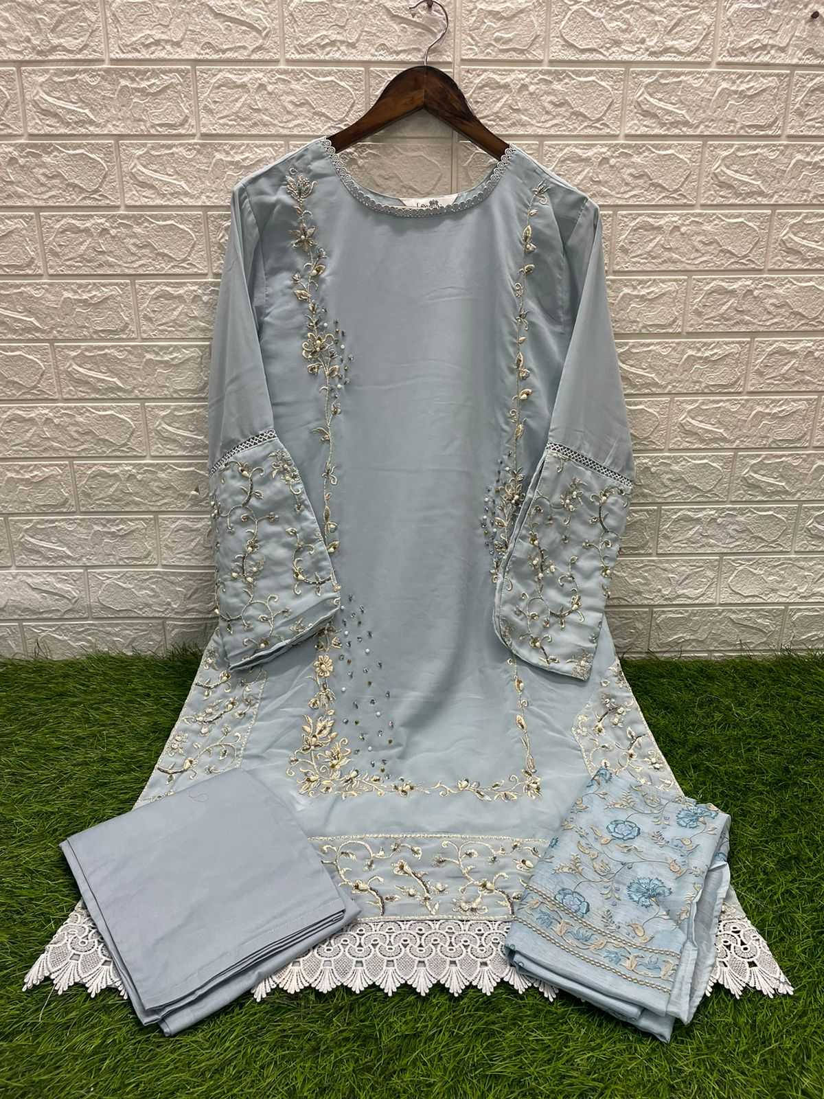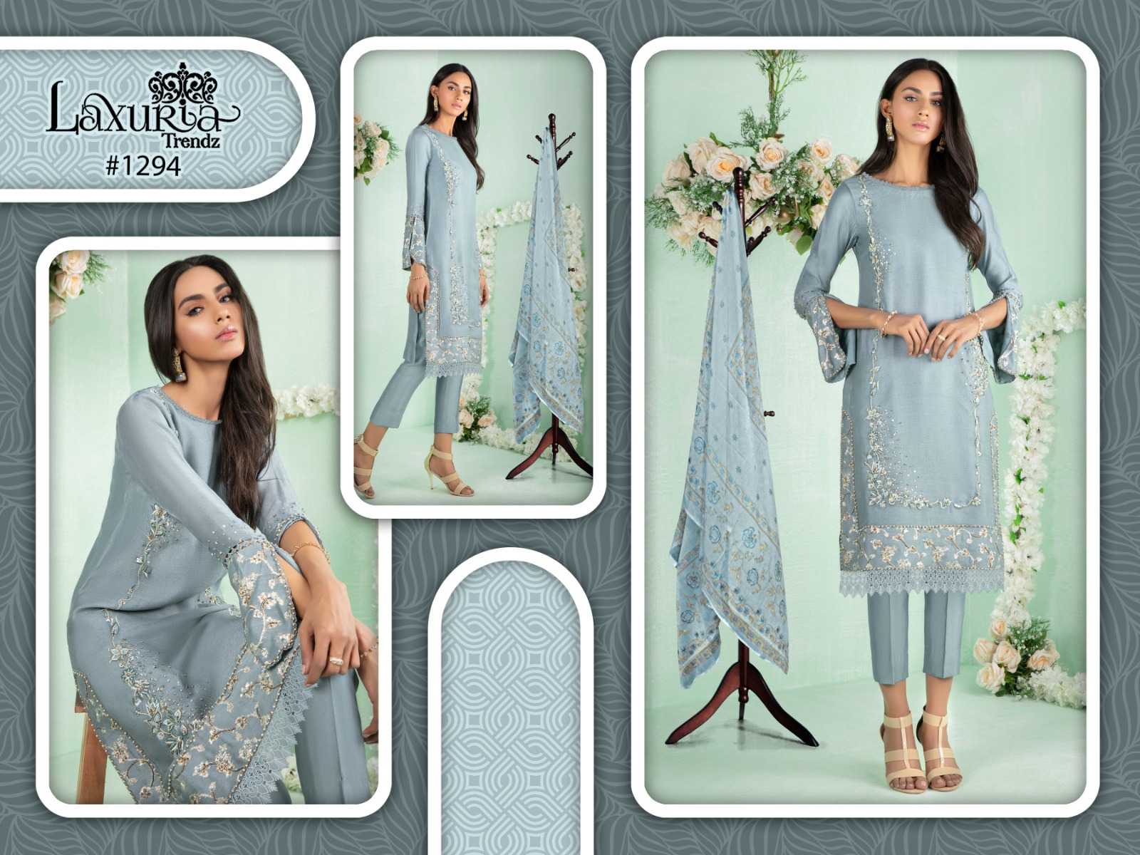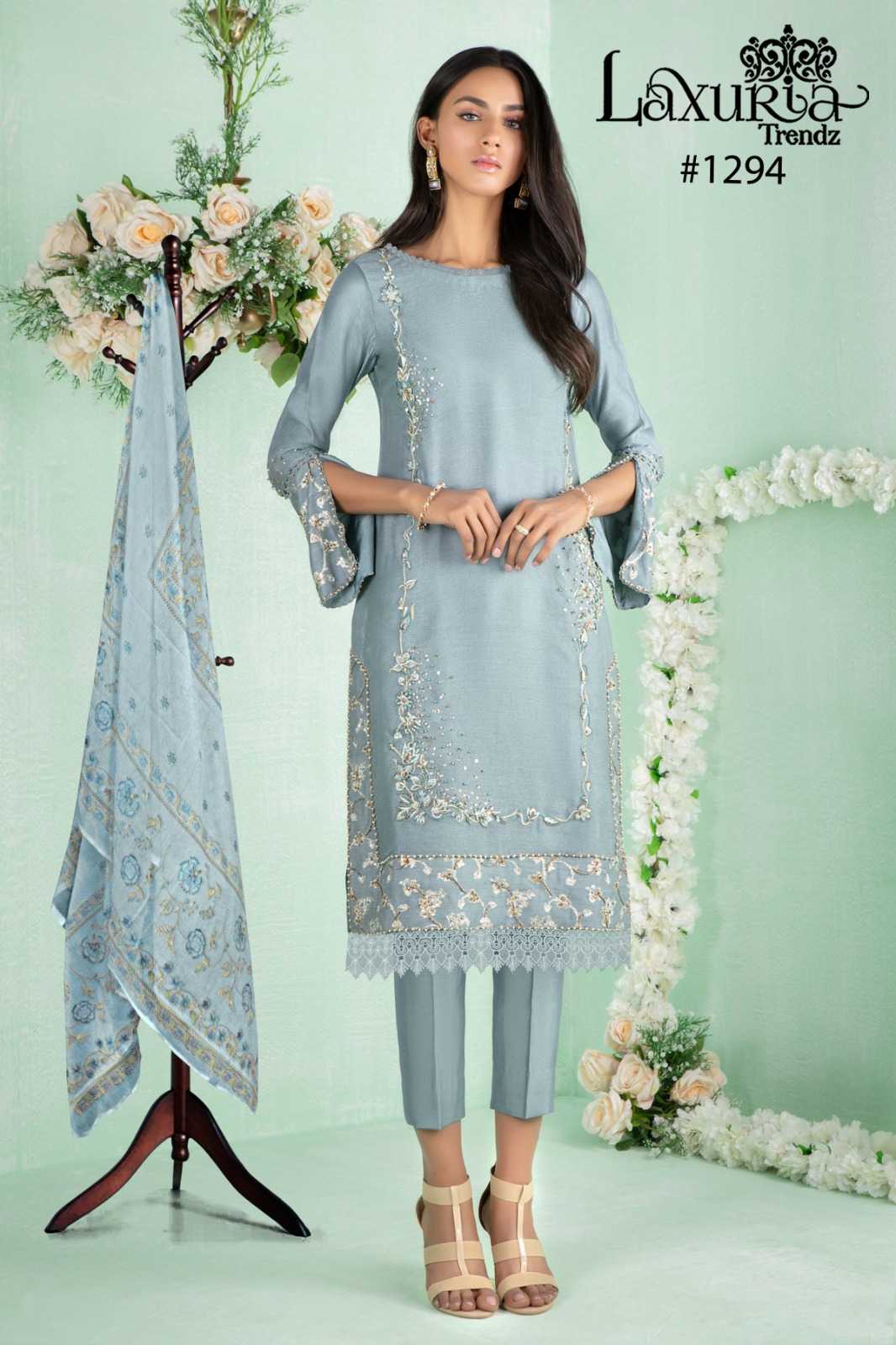 laxuria 1294 fancy embroidery handwork pakistani kurti with pant and chiffon digital dupatta