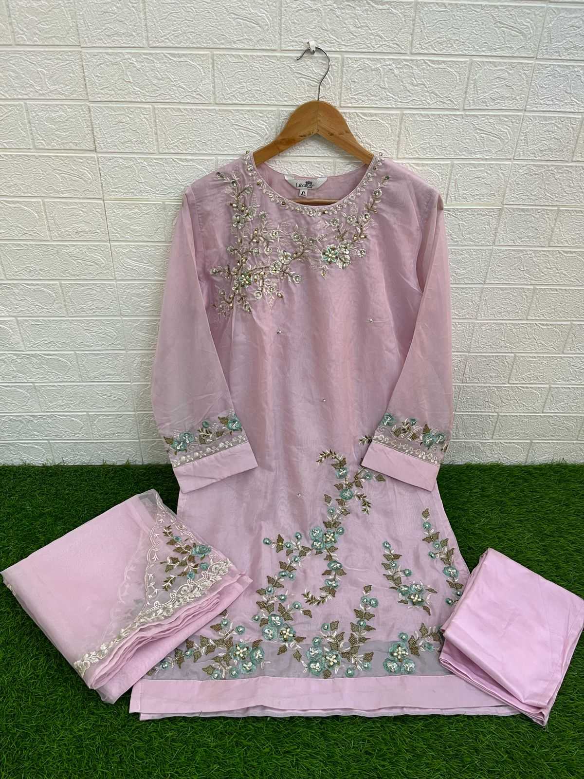 Laxuria Trendz….New Design Launch … D. No. 1337 Description ❤️ A sophisticated yet elegant on Liac Pink shade enhanced with intricate long shirt , embroidered Front & floral decorated with handwork Tunic ......the duptta comes with Organza With Embroidery that gives a perfect ending to this outfit ❤️ Rate 1550/- each ✨ Despatching Ready✨ |