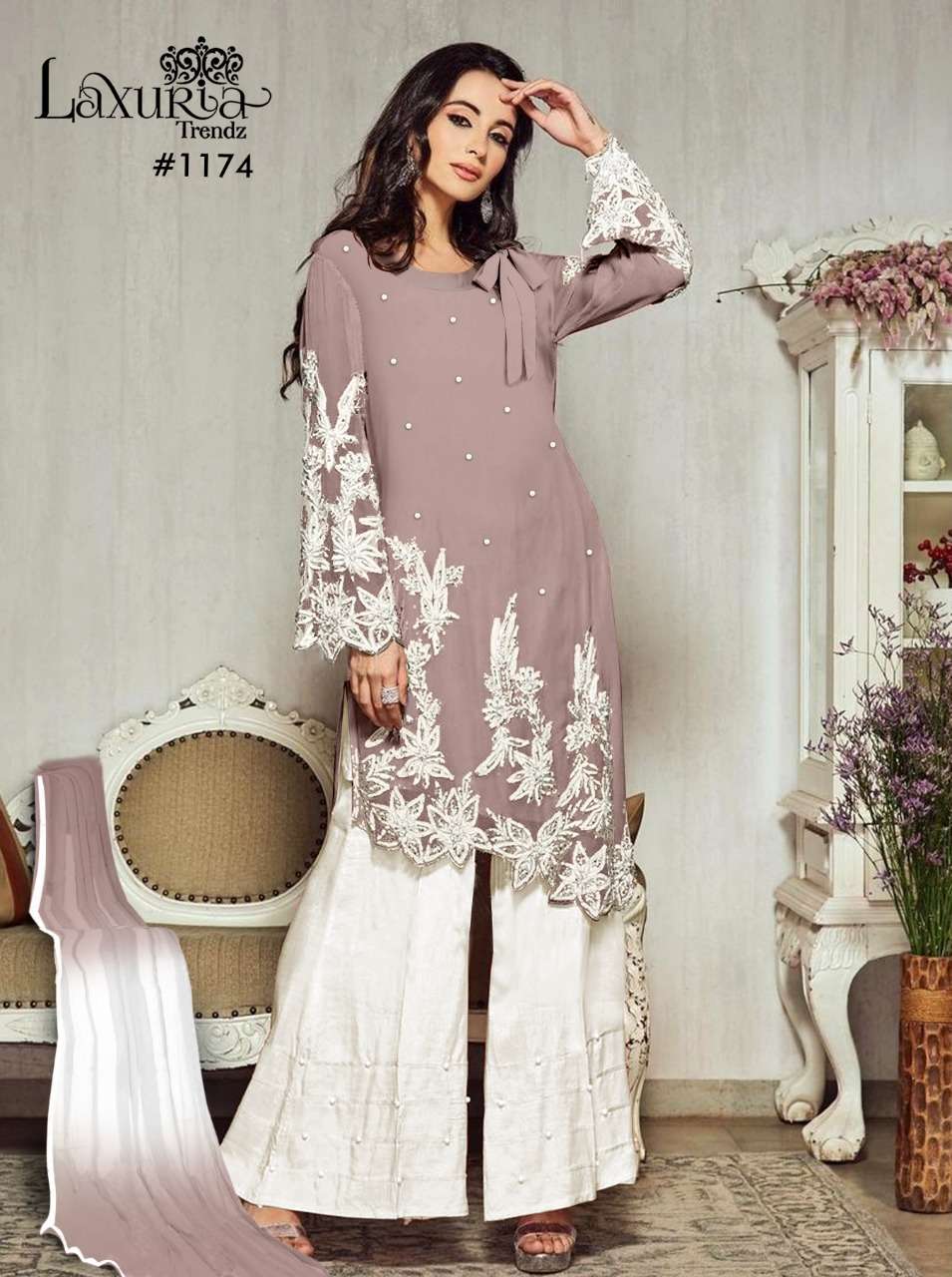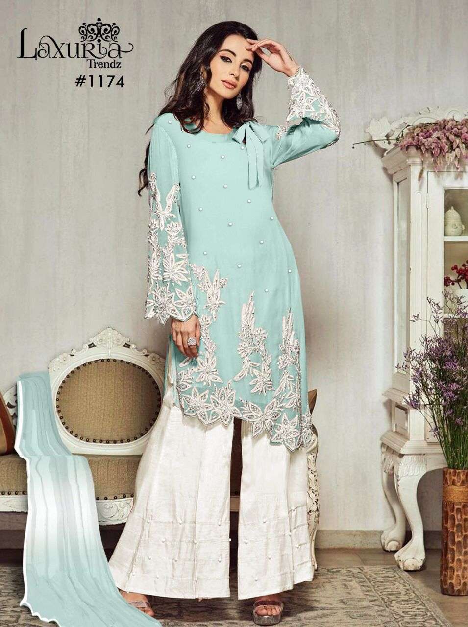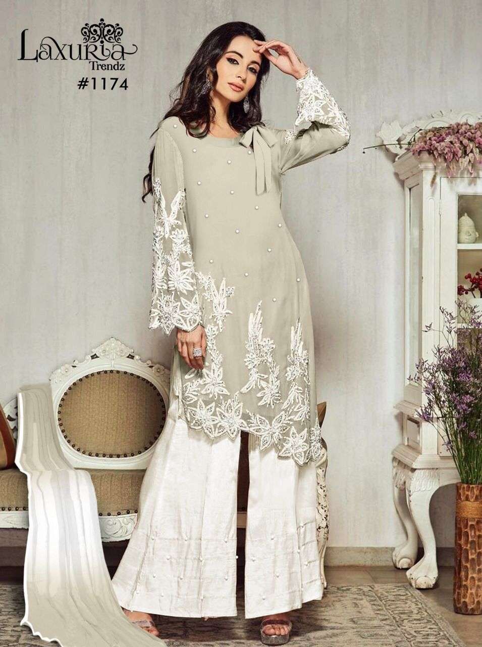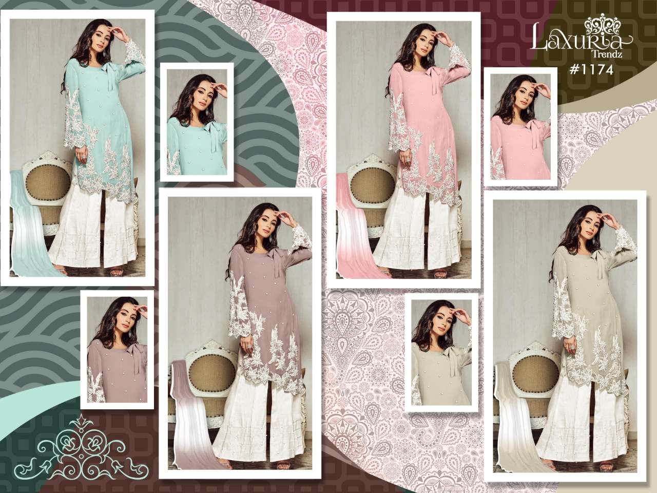 laxuria d no 1174 designer kurti with palazzo & dupatta set at best rates