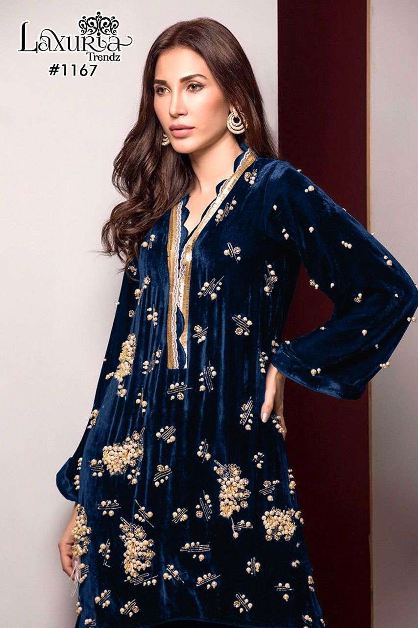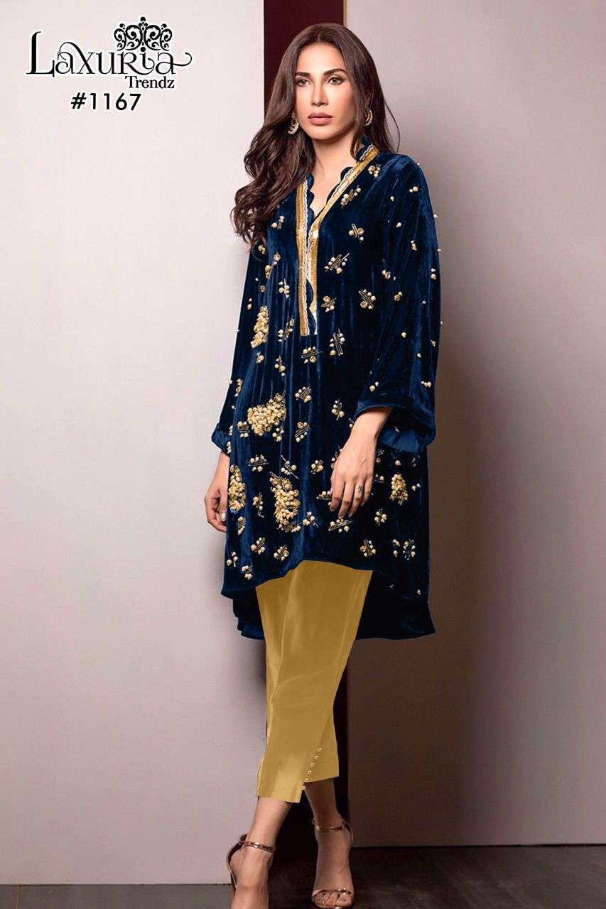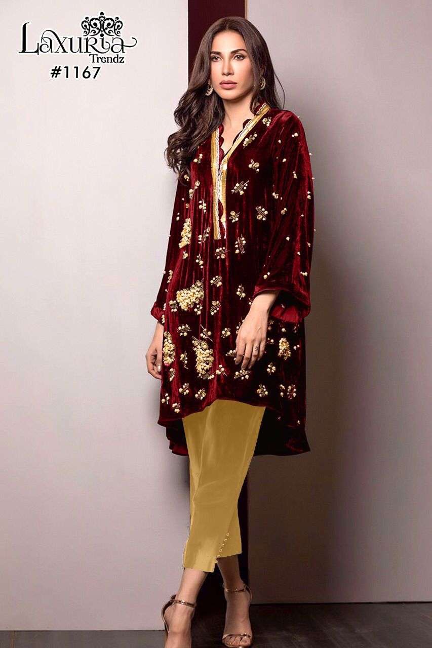 laxuria trendz 1167 velvet pakistani readymade winter top and cotton pant