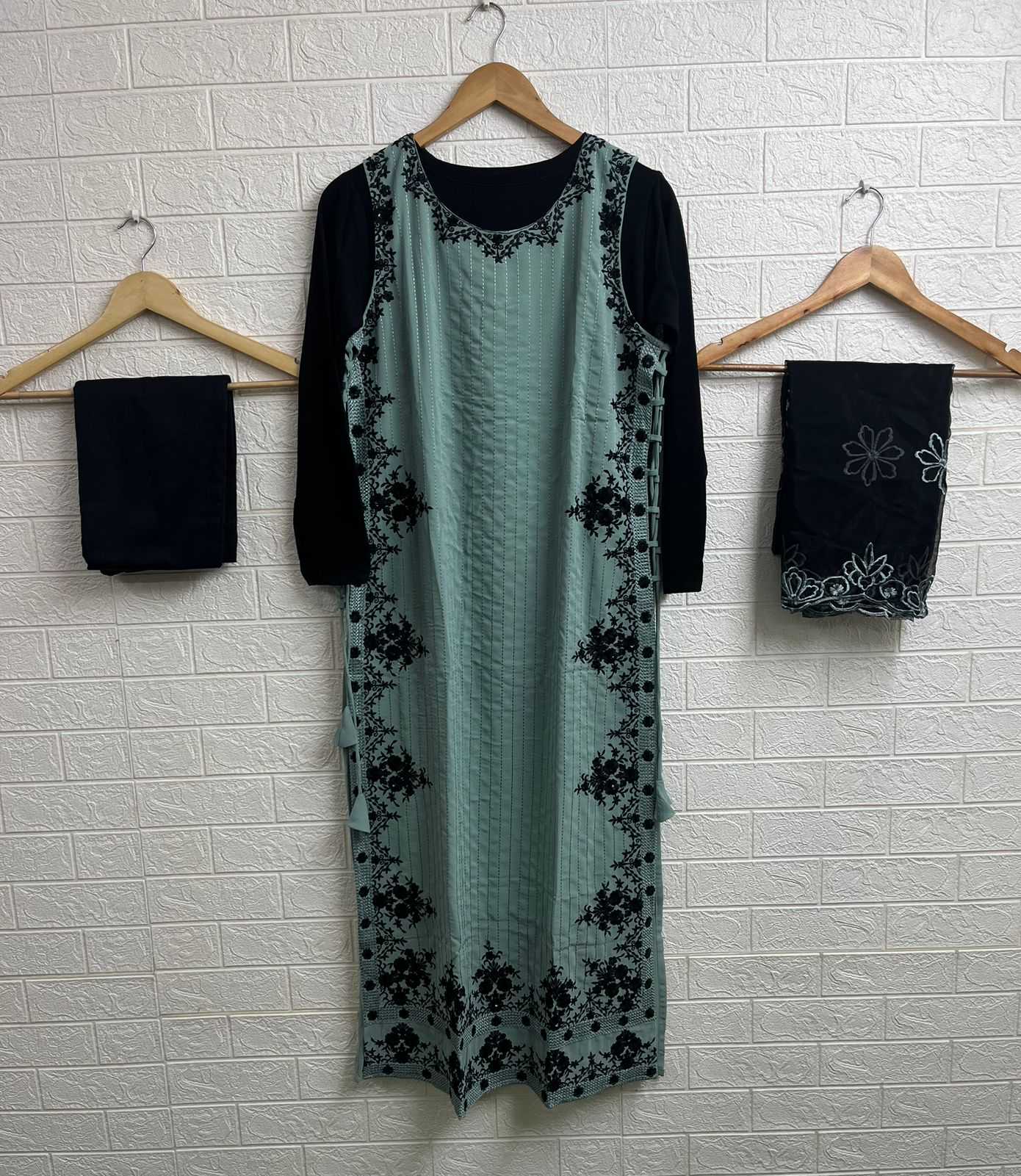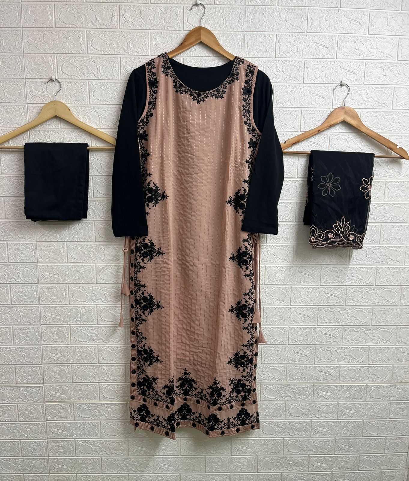 laxuria trendz 1428 georgette full stitch stylish 3pcs dress