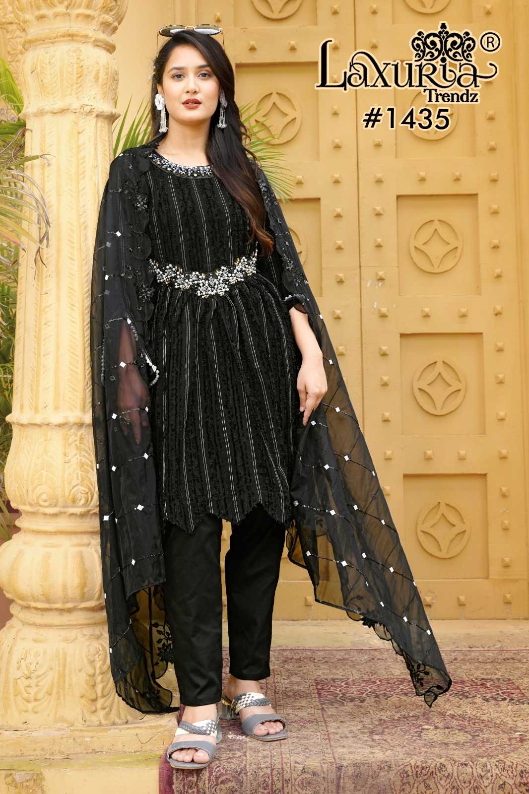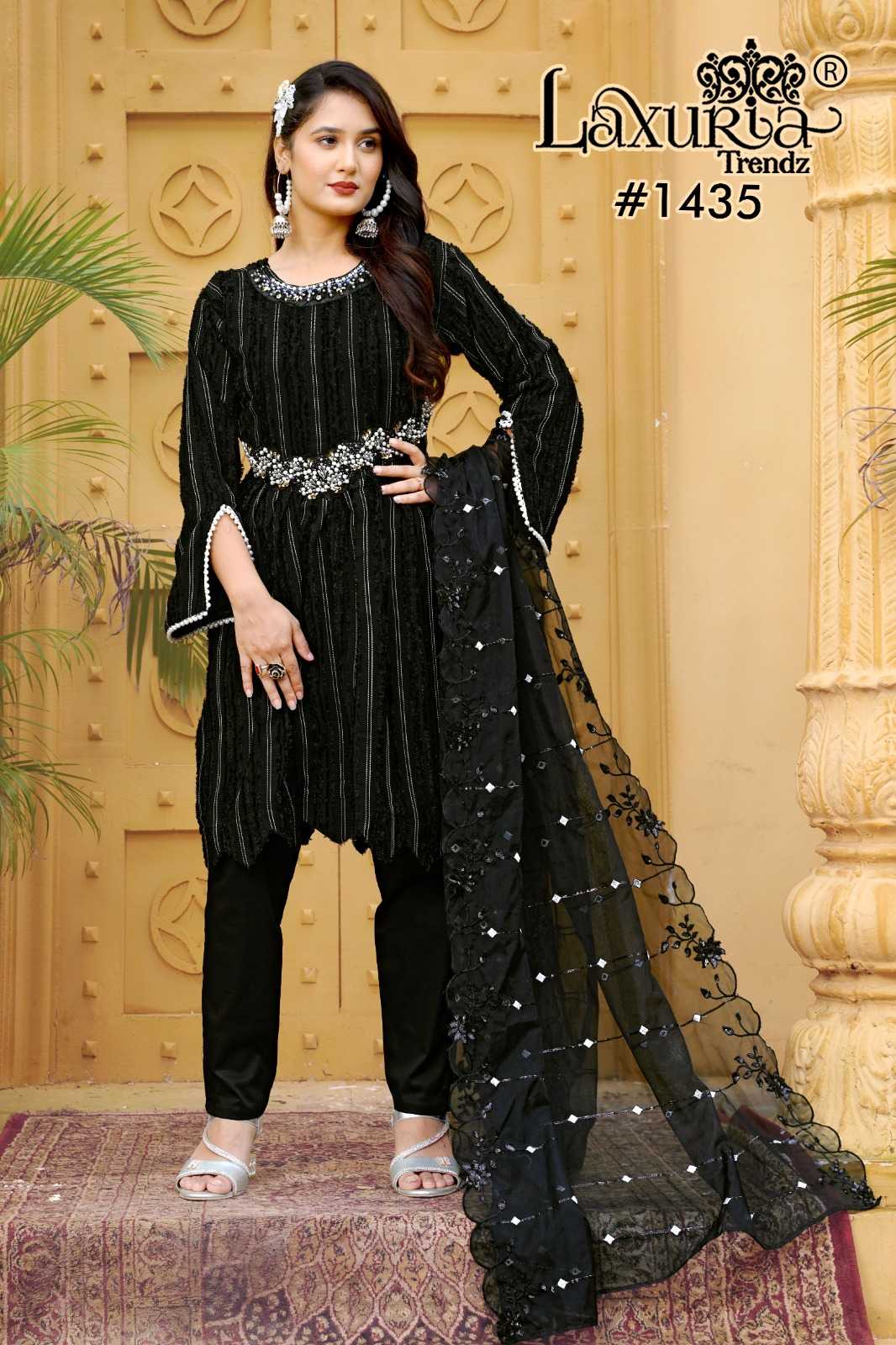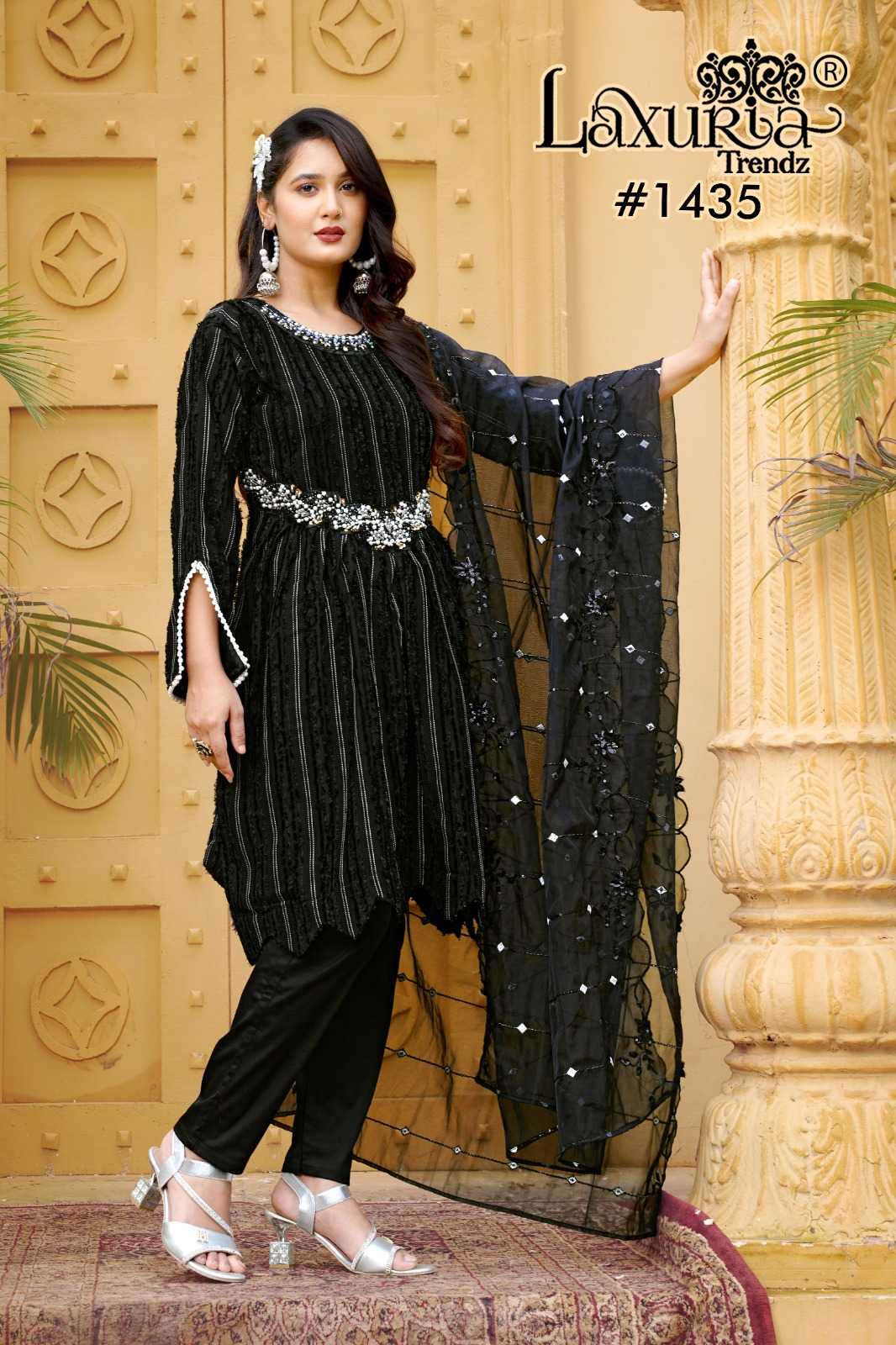 laxuria trendz 1435 new trendy feathered bsy full stitch pakistani kurti with pant