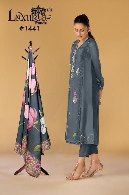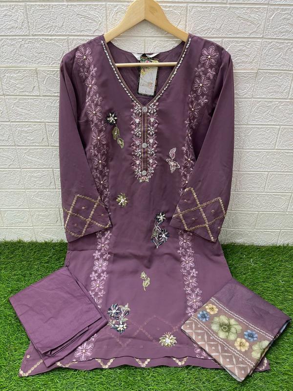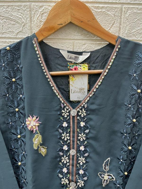 laxuria trendz 1441 fully stitch georgette classic pakistani suit for ladies