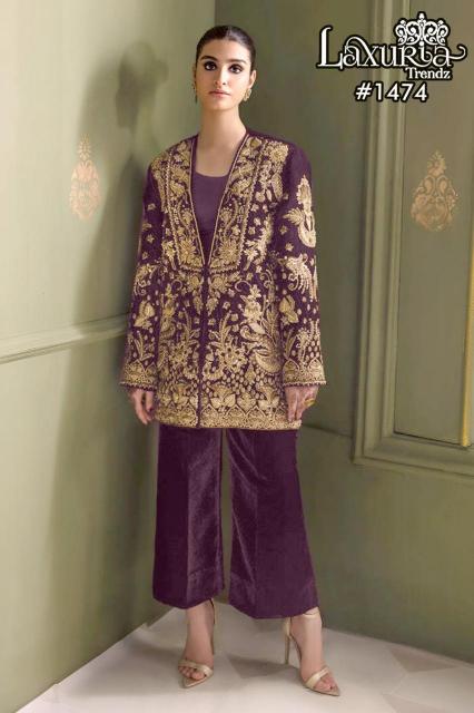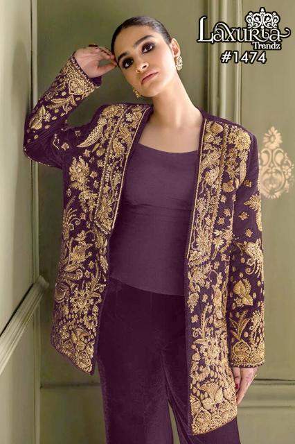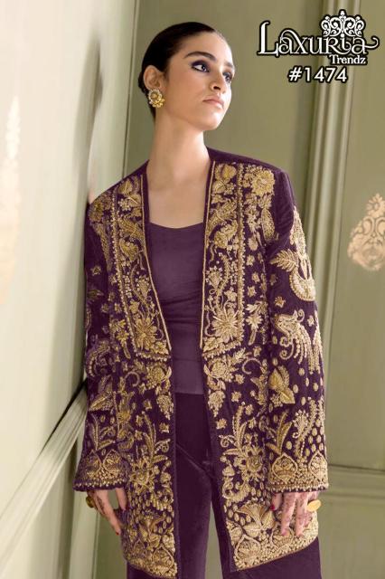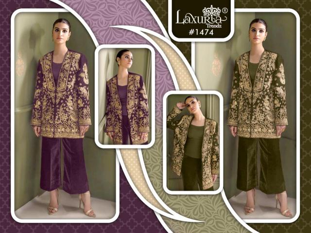 laxuria trendz 1474 velvet designer embroidery readymade trendy co-ord set