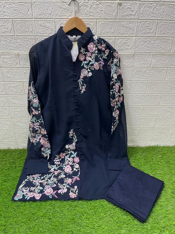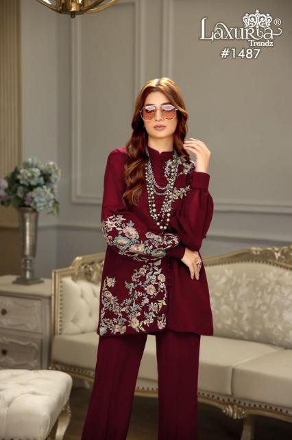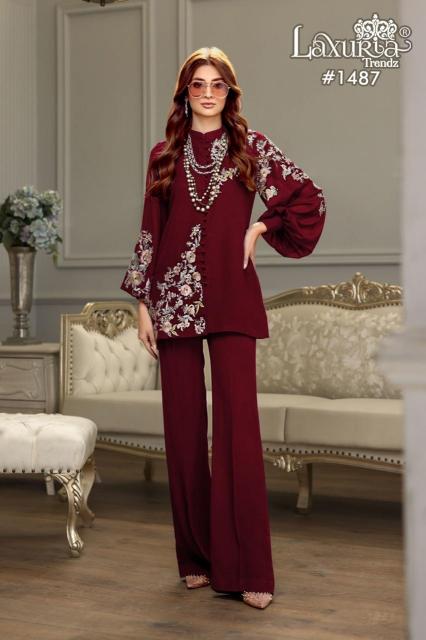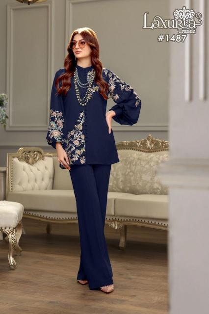 laxuria trendz 1487 fox georgette readymade classic look co-ord set