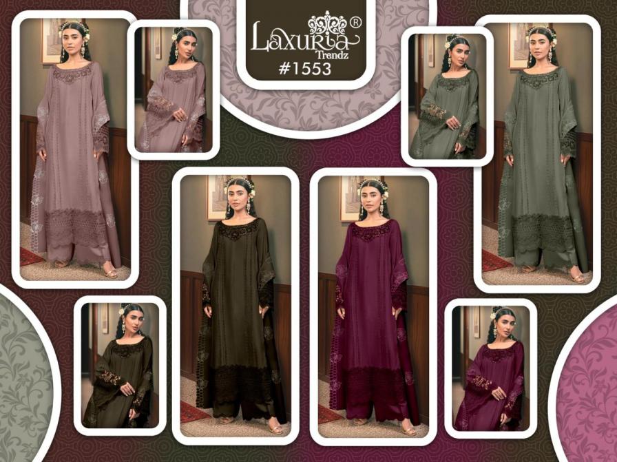laxuria trendz 1553 satin hit design fully stitch pakistani suits