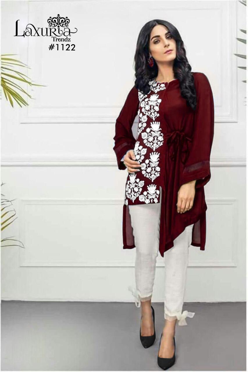 Laxuria Trendz Launch D No 1122 Beliza Silk Designer Top With Cigarette Pant
