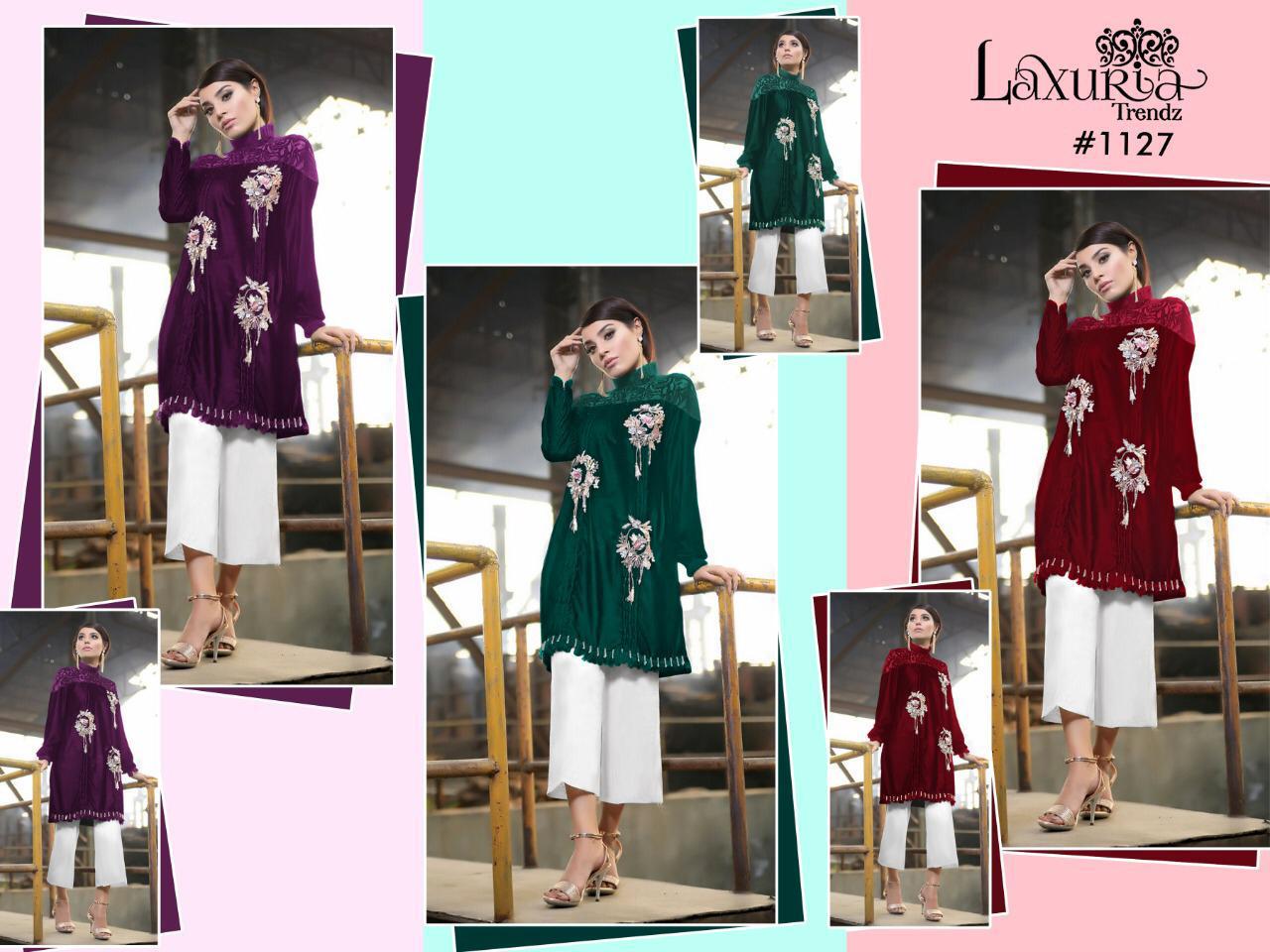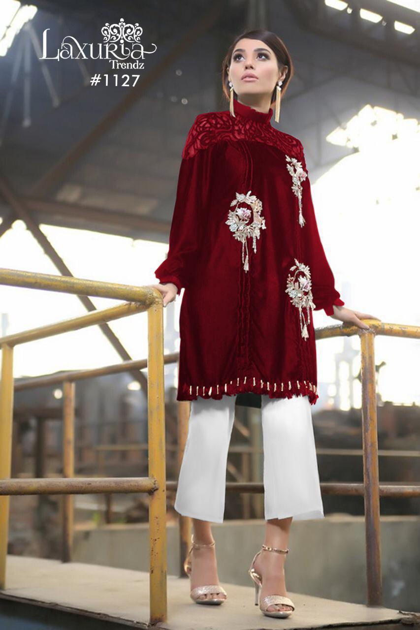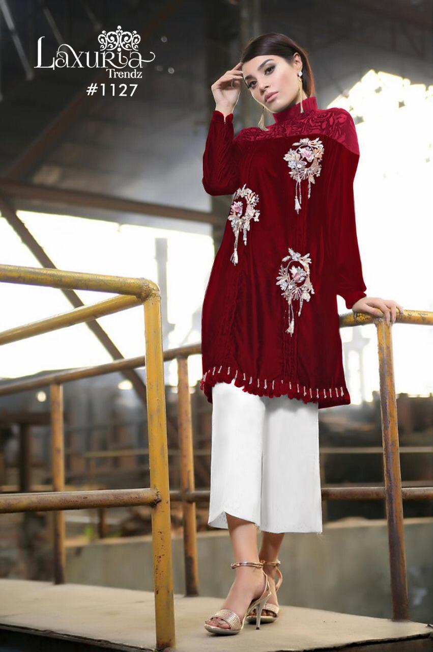 Laxuria Trendz Presents D No 1127 Velvet With Beautiful Work Top With Stretchable Pant