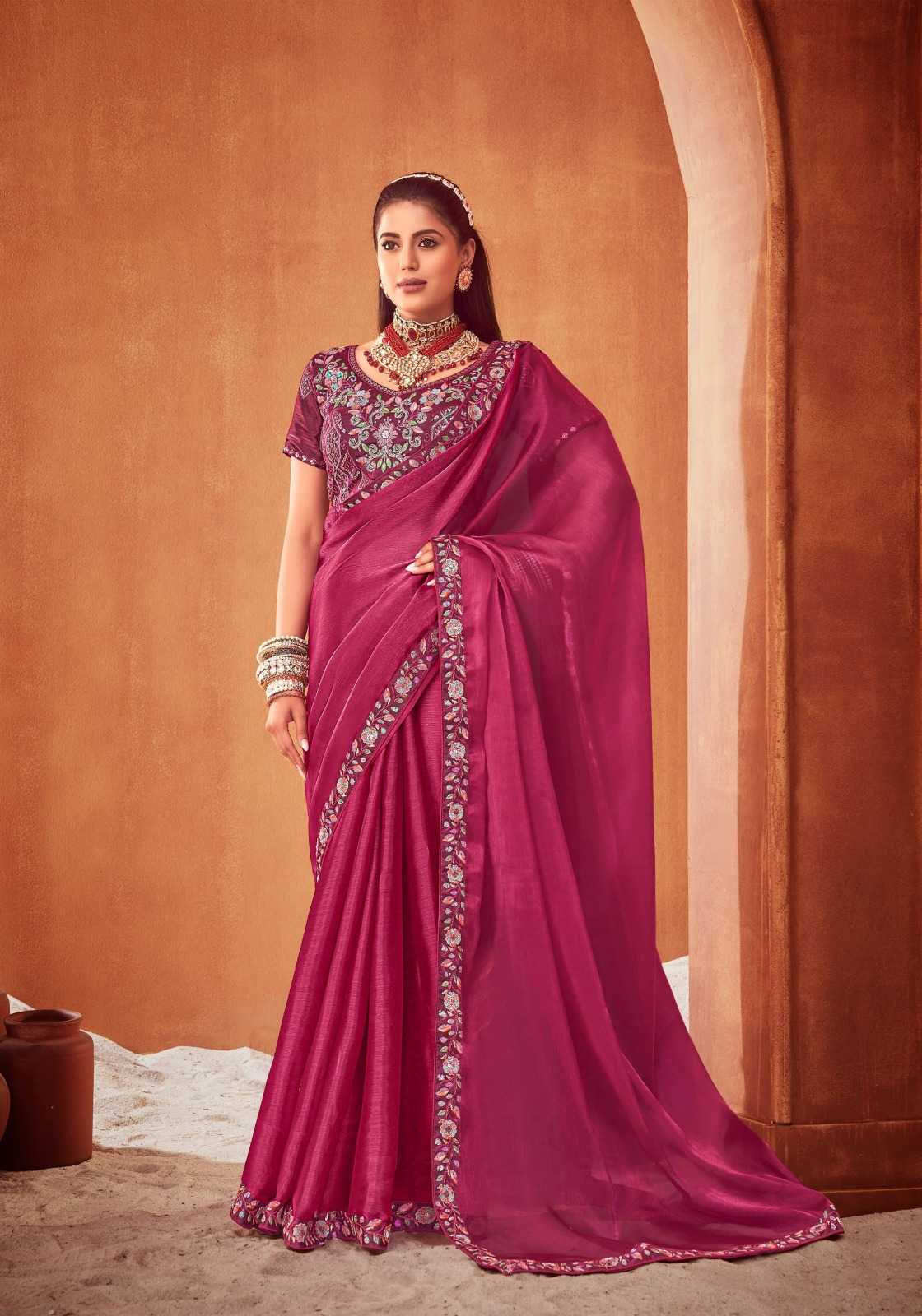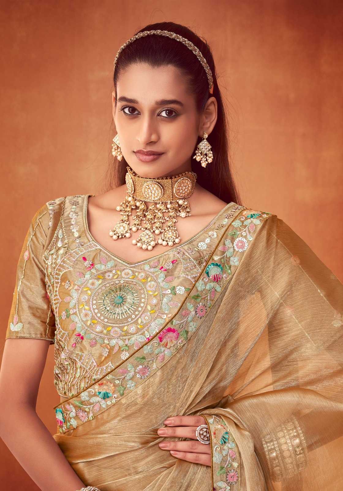 New launching CATLOUGE- LE QUYEN Fabric- Moti chiffon heavy khatli embroidery 🪡 work blouse & Border Qty- 6 pcs RATE - 1855₹