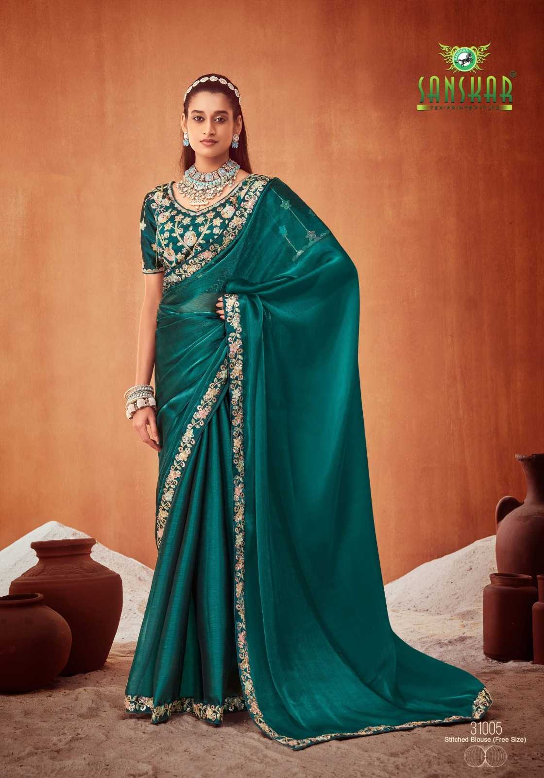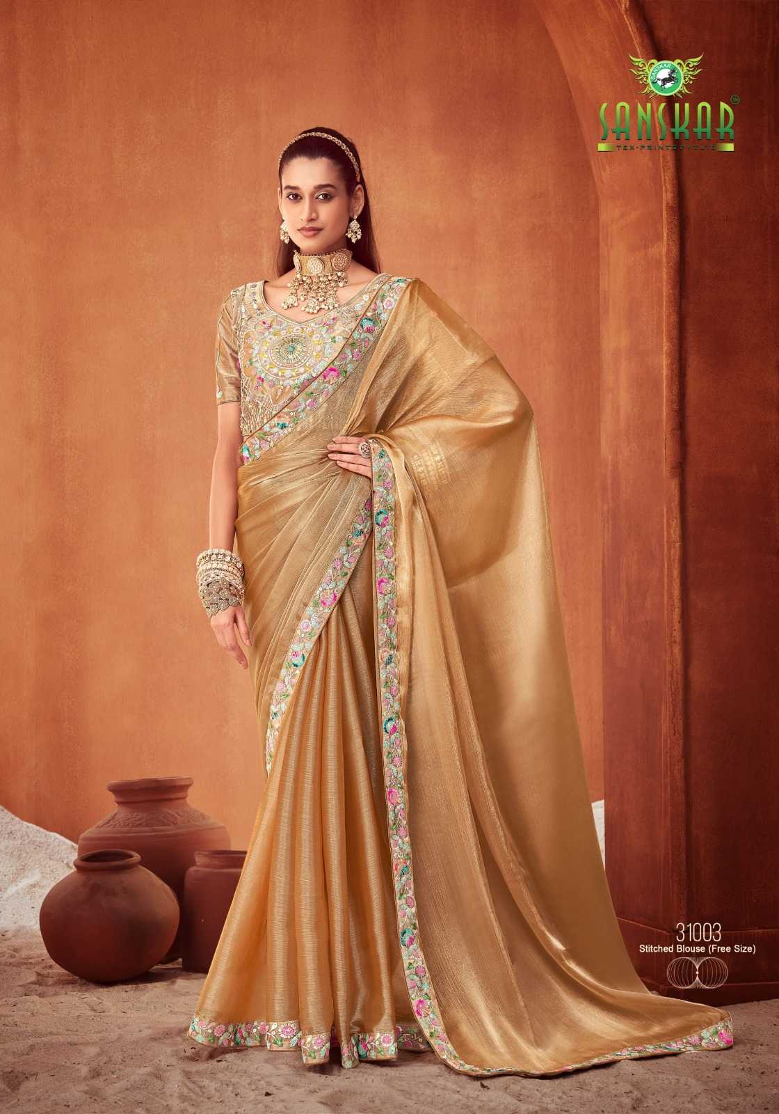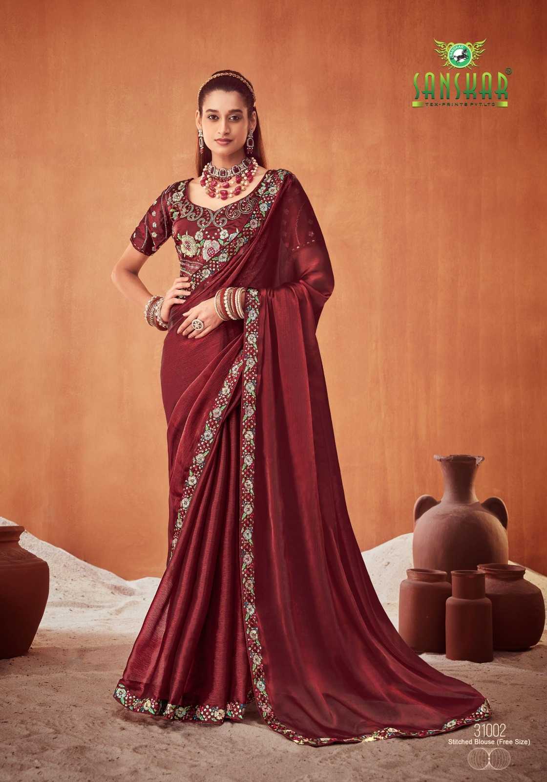 le quyen by sanskar tex prints moti chiffon stylish saree stitch blouse
