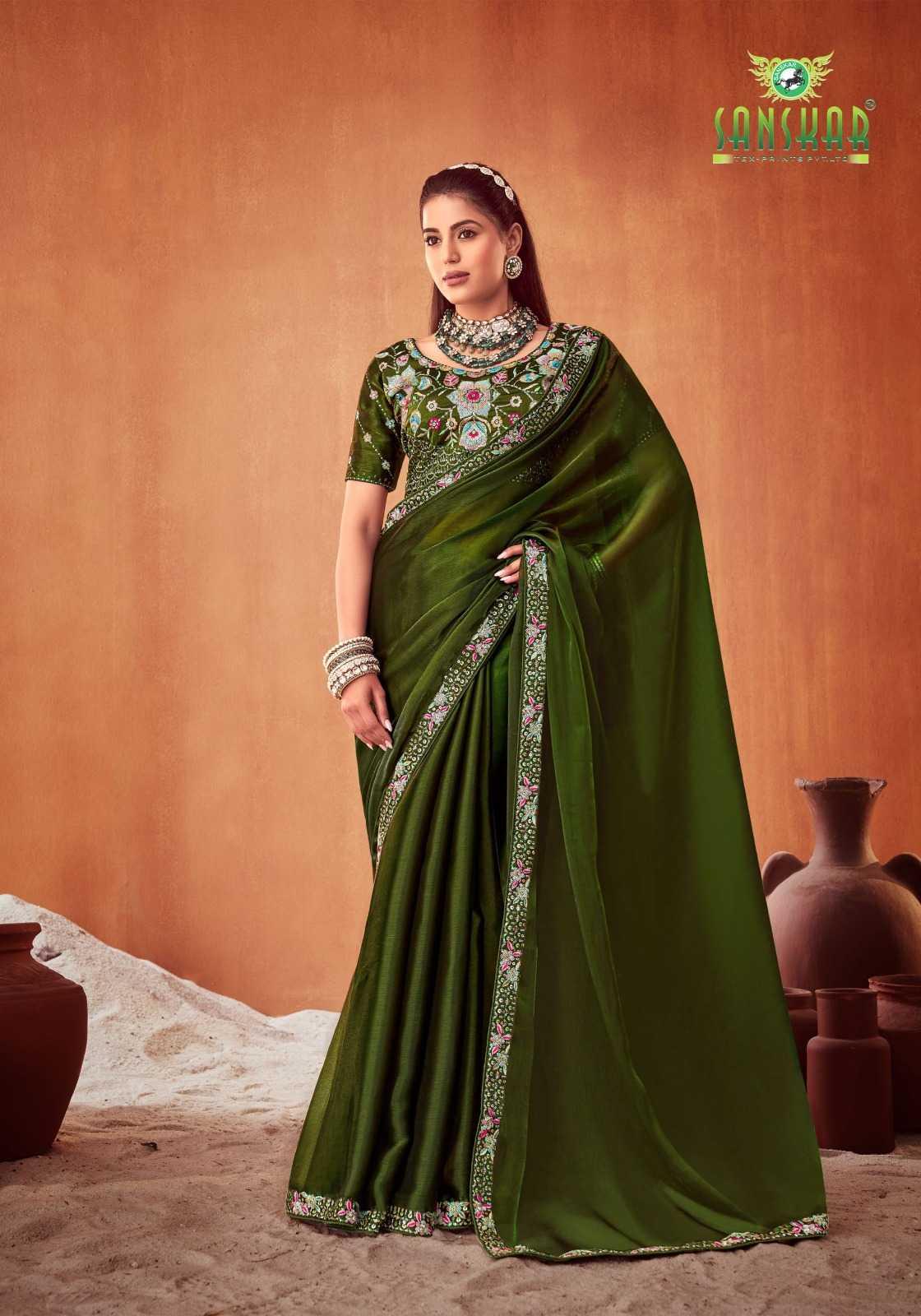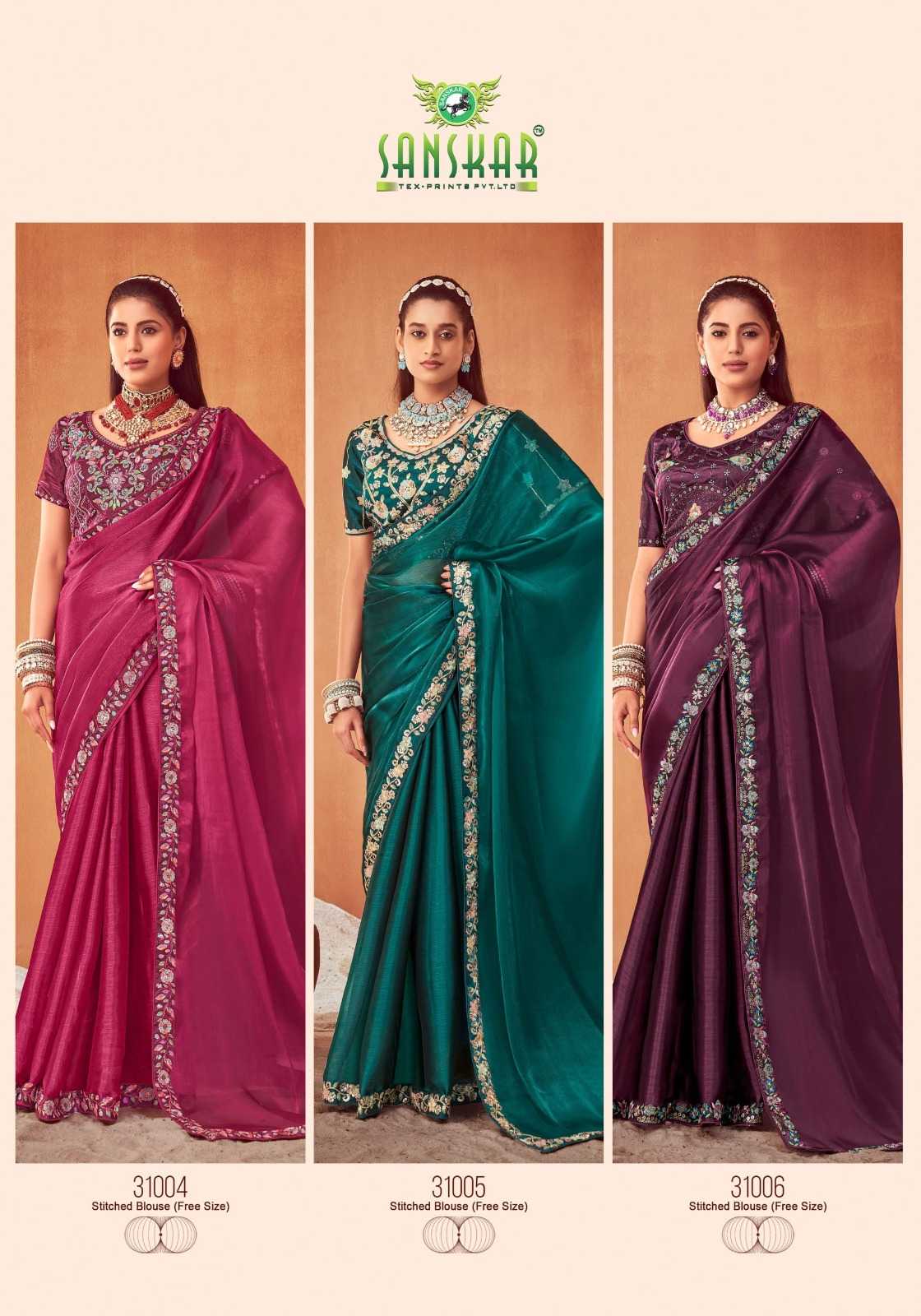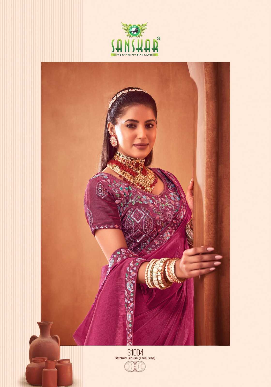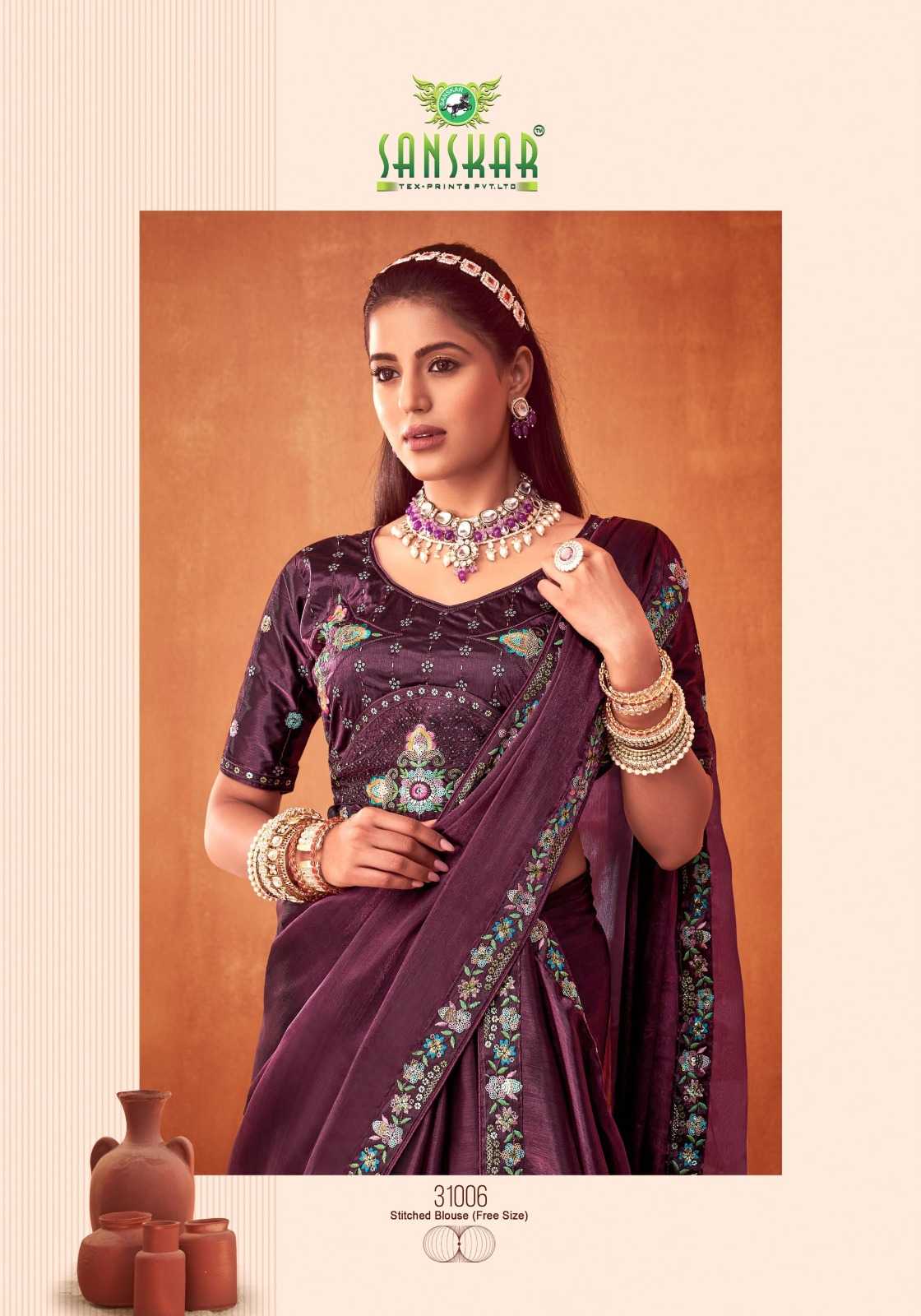 le quyen by sanskar tex prints moti chiffon stylish saree stitch blouse