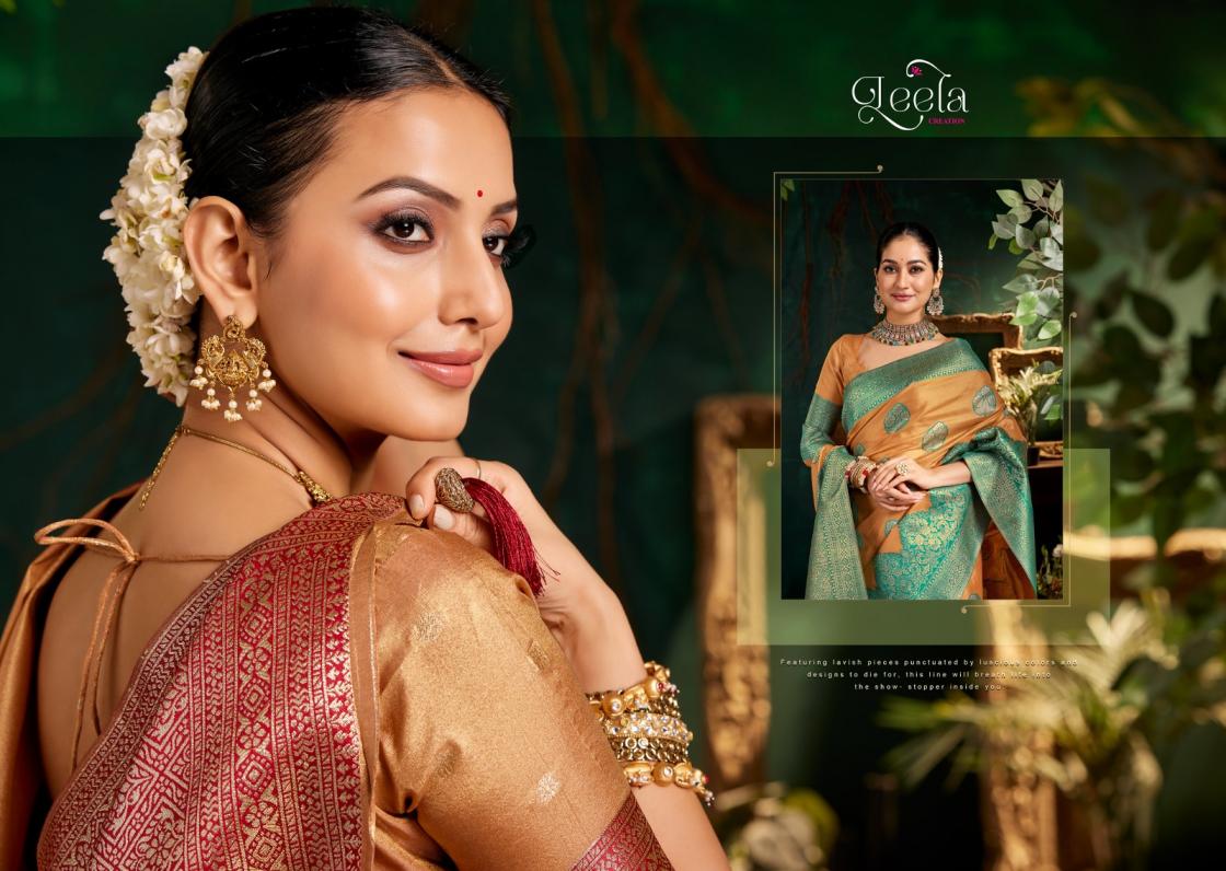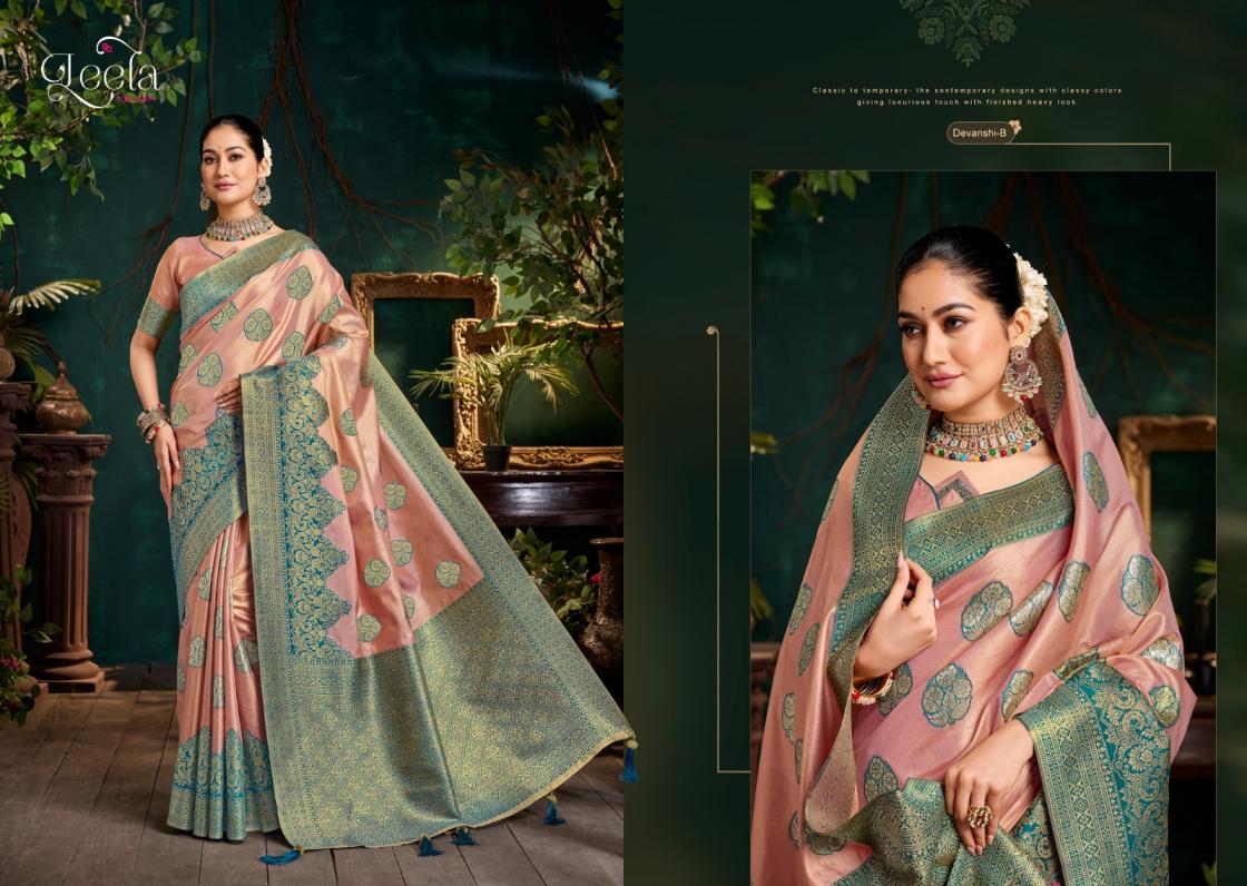 A timeless blend of elegance and luxury, crafted from finely woven top-dyed silk yarn for a rich and long-lasting colour finish. The saree features a smooth, buttery-soft texture, natural sheen, and excellent drape that enhances every silhouette. Brand : Leela Creation Catalog Name : Devanshi Series : (A TO F) Saree : Top Dyed Silk With Designer Weaving Work With Contrast Border Blouse : Top Dyed Silk Price :- 1915/- 5% Gst Occasion : Party wear,Festival Wear |
