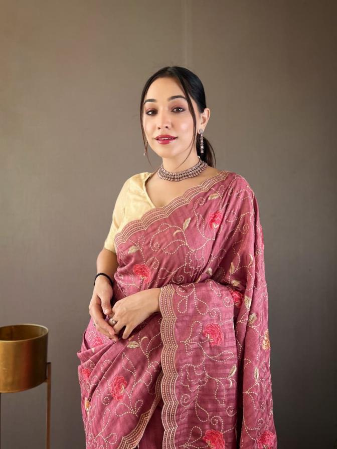 leela embroidery tussar silk traditional sarees perfect for festivals
