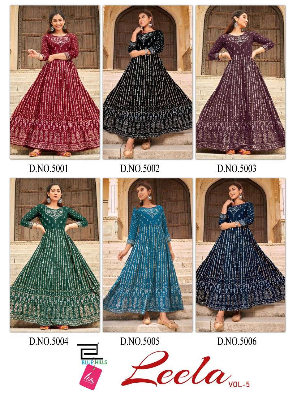 leela vol 5 by blue hills rayon big sizes ladies long gown