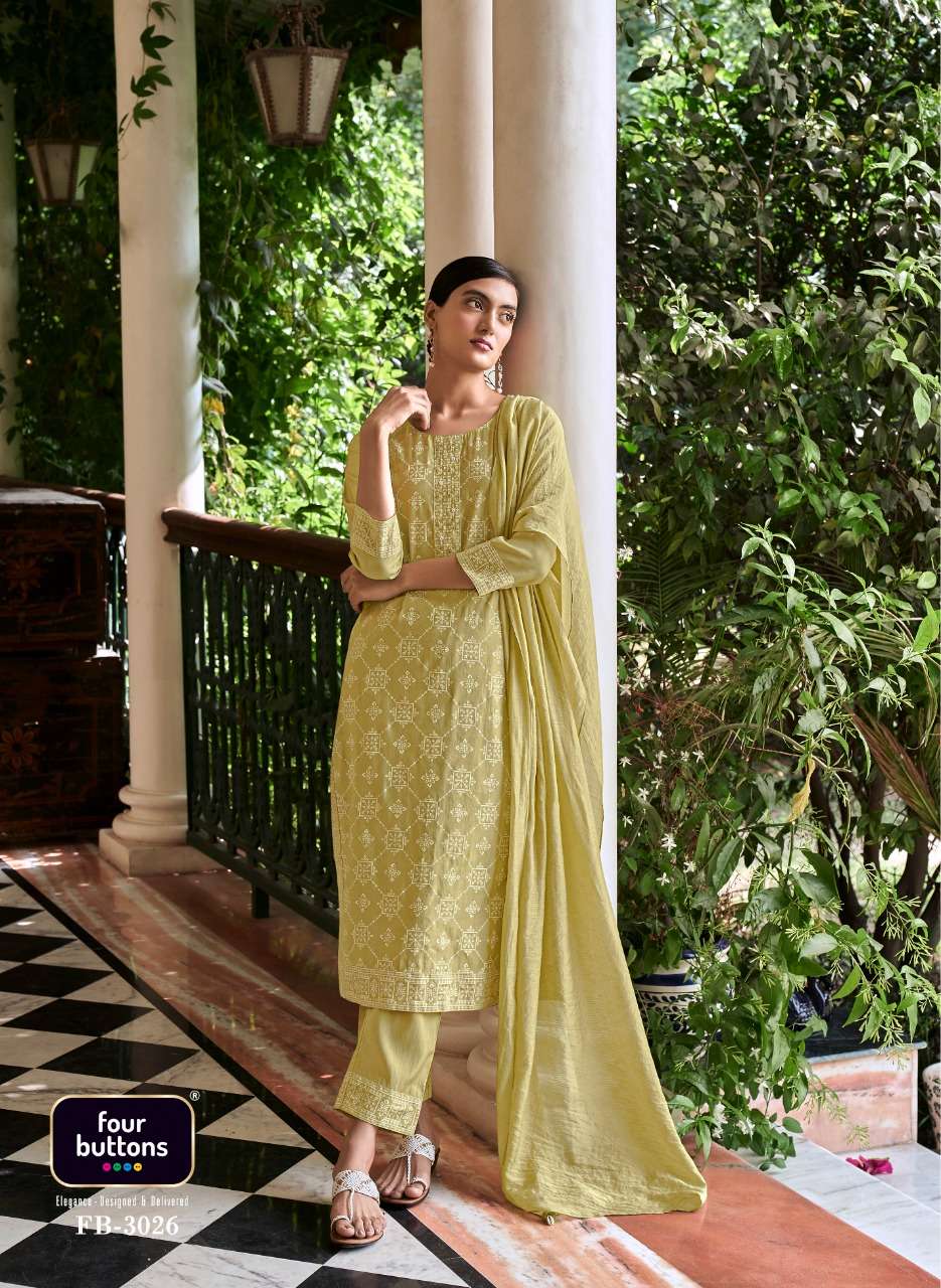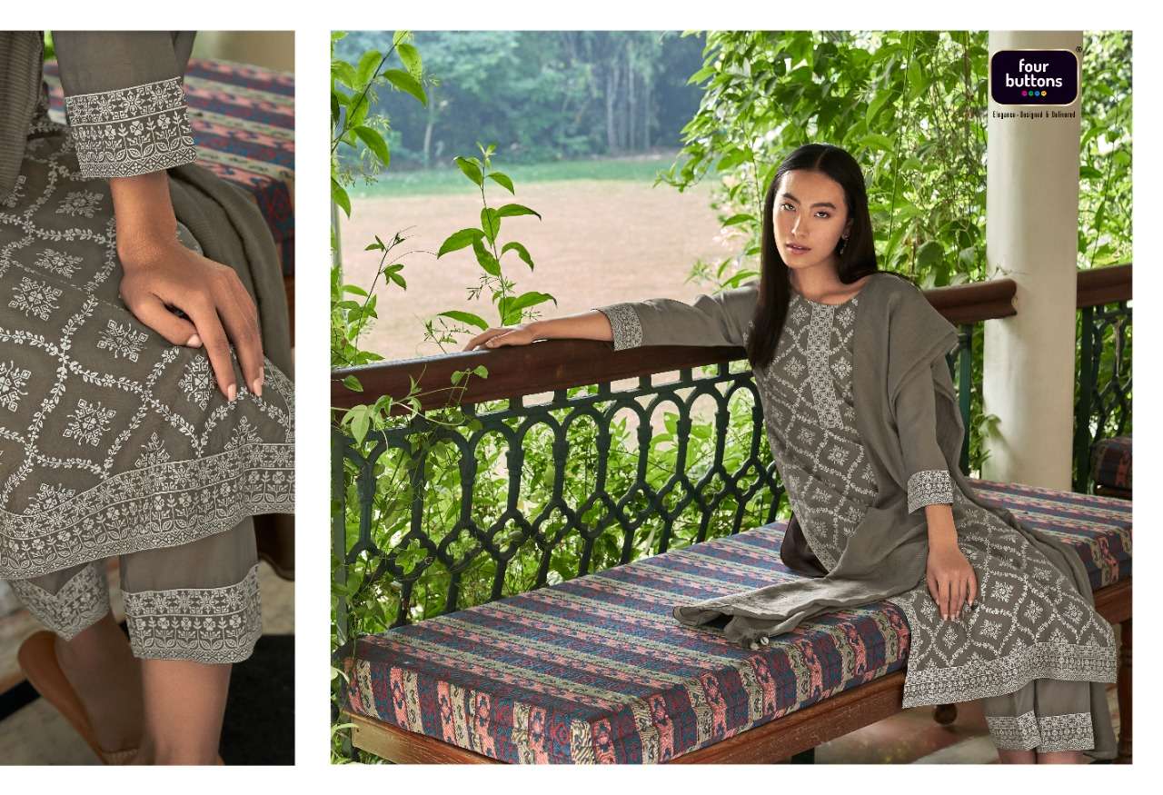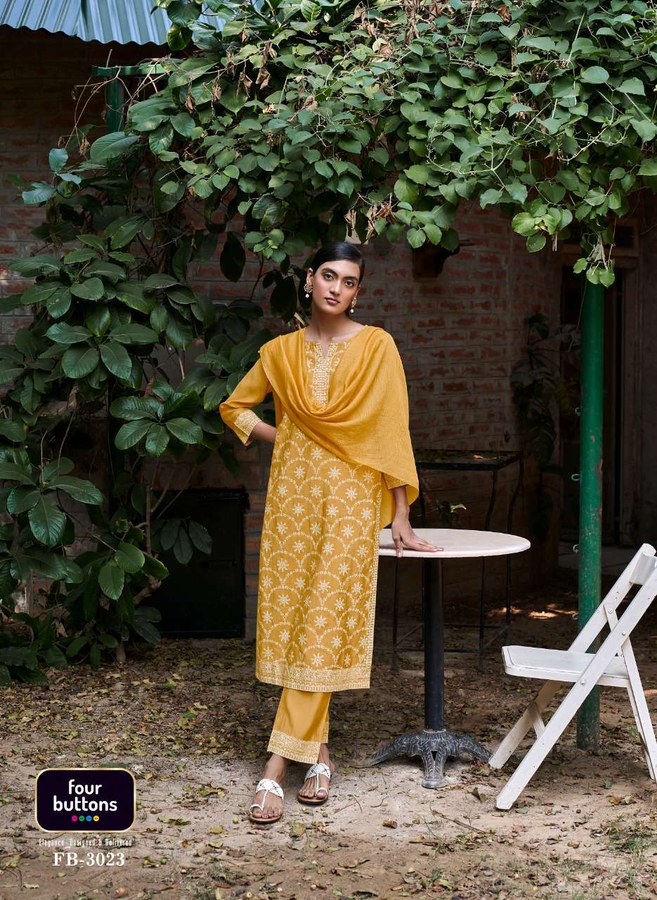 FOUR BUTTONS proudly launches its NEW collection 2023 "LEMON-6" FABRIC KURTI - PLACEMENT PRINTS WITH HANDWORK ON VISCOSE BY MODAL CHANDERI SILK BOTTOM - PRINT ON VISCOSE BY MODAL CHANDERI SILK DUPATTA- PATTERNED VISCOSE SILK WITH TASSELS RATE - Rs 1099/- per pcs SIZES - L, XL, XXL, 3XL |