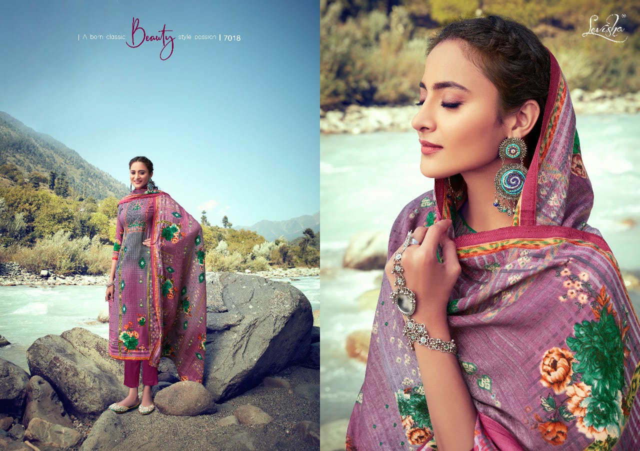 presents ”LIYANA” pure pashmina collection 🔺Top: Pure Pashmina *Digital* Printed with Self Embroidery. (2.50 mtrs) 🔺Dupatta: Pure Pashmina Shawl *Digital* printed (2.30 mtr) 🔺Bottom: Pure pashmina (3 mtrs apx) 🔺Pcs: 8️⃣ 🔺Selling Rate:6️⃣2️⃣5️⃣/- (GST extra) 🔺 Dispatch:-1⃣0️⃣ October At Levisha®️ M.pankaj fashion , Quality Fabrics with exquisite designs at Best Price is our Cherished Legacy. Super packing pouches with exclusive Leather bag 💼.... Regards- LEVISHA TEAM |