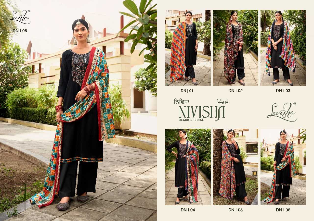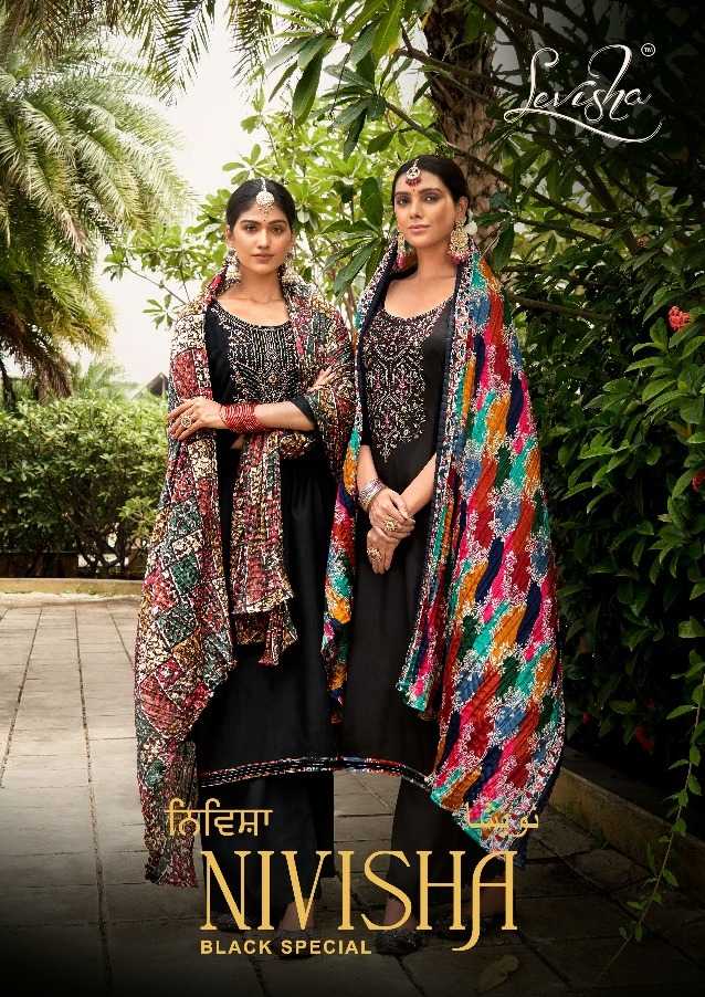 levisha nivisha black special designer work salwar kameez material with bandhej dupatta