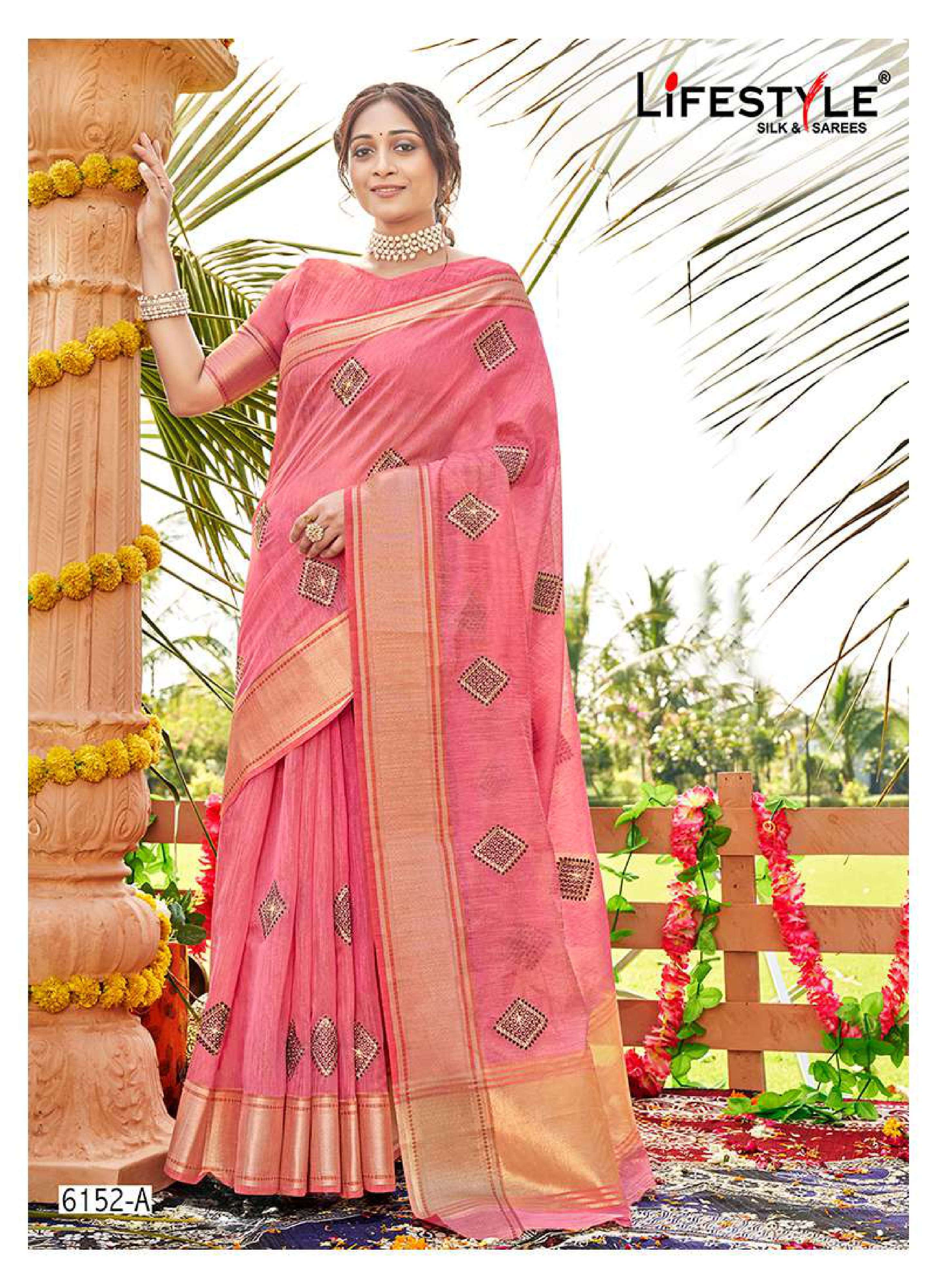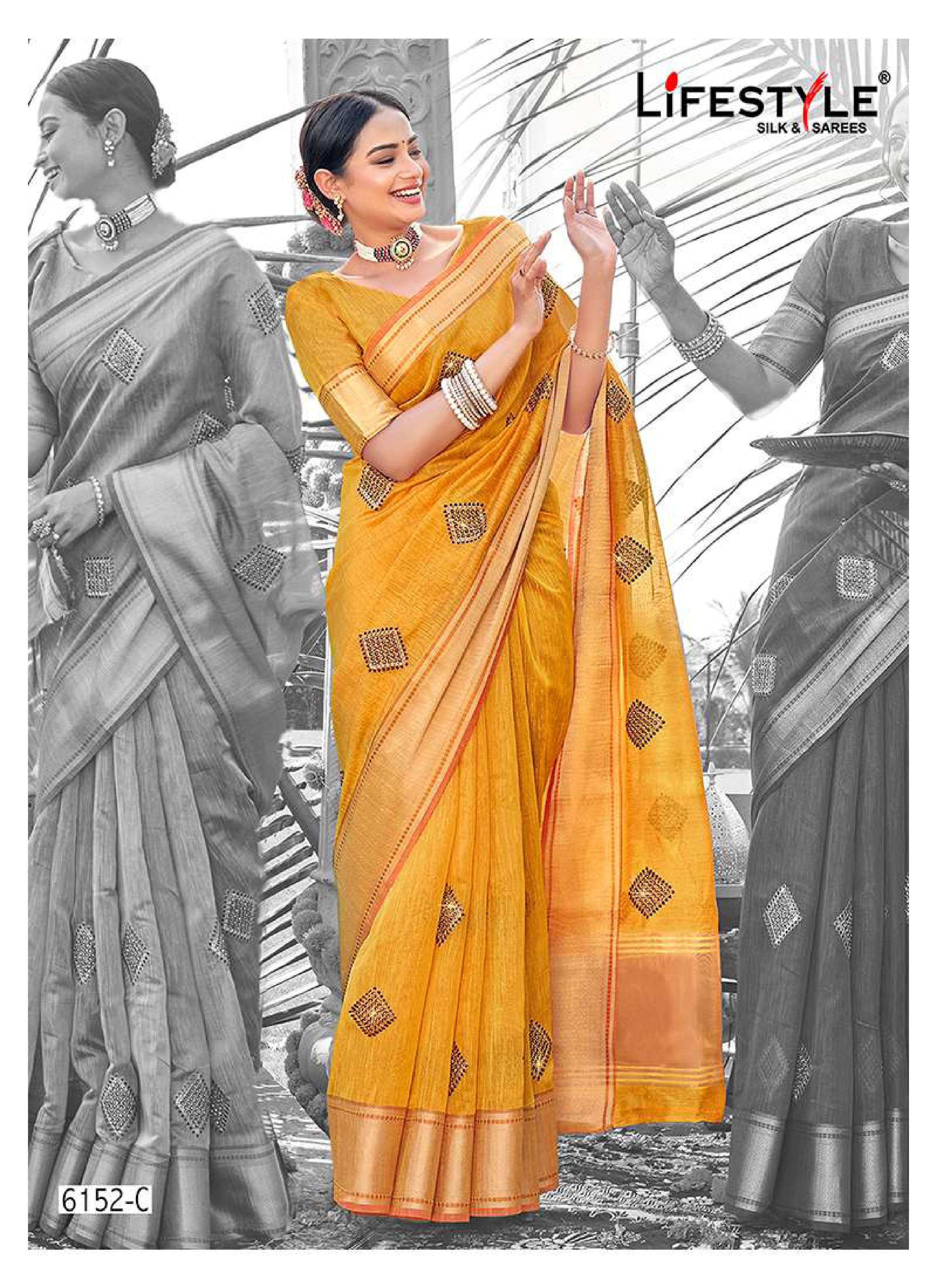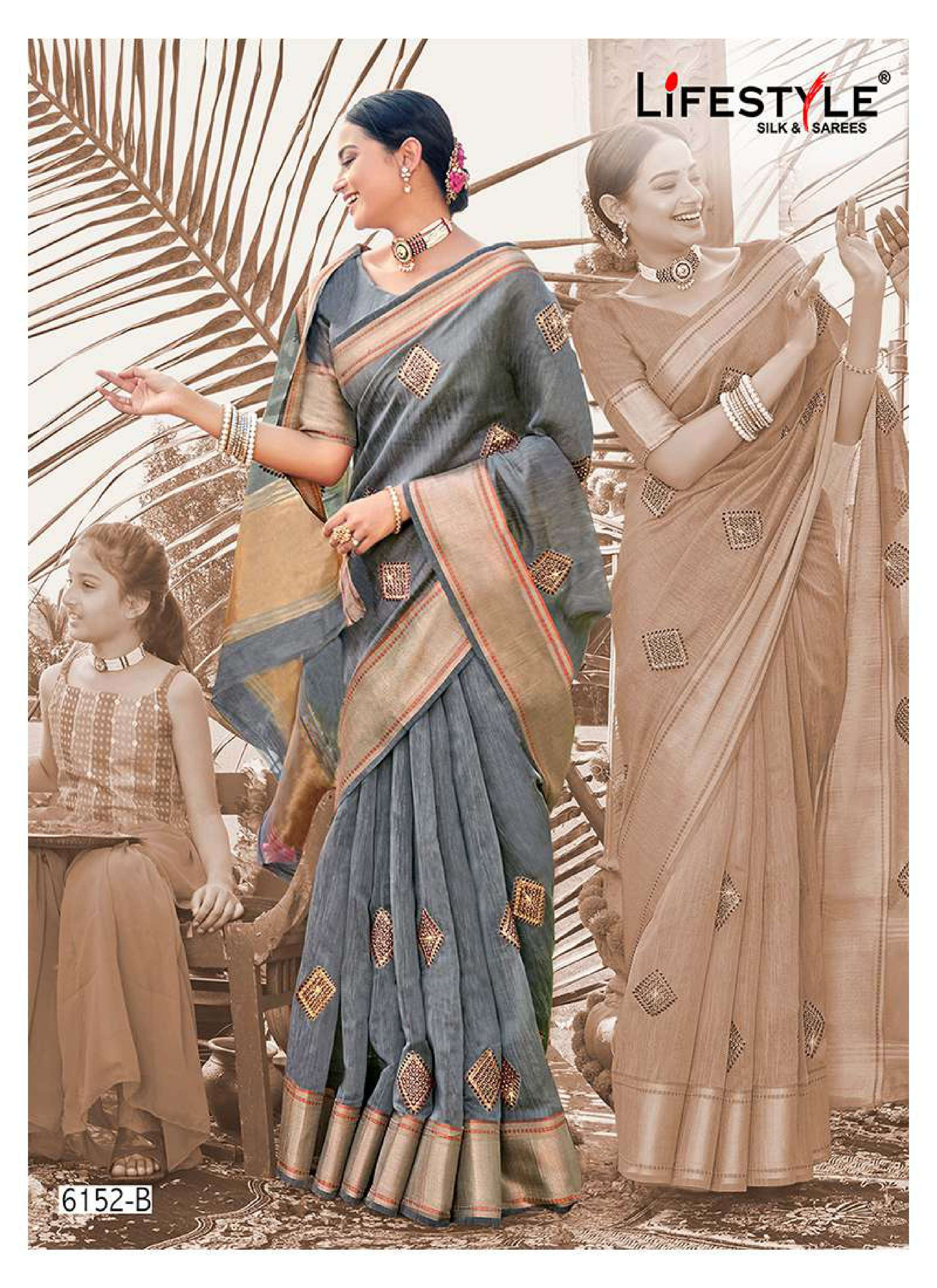 lifestyle 6152 vol 1 fancy lilen sarees supplier in surat