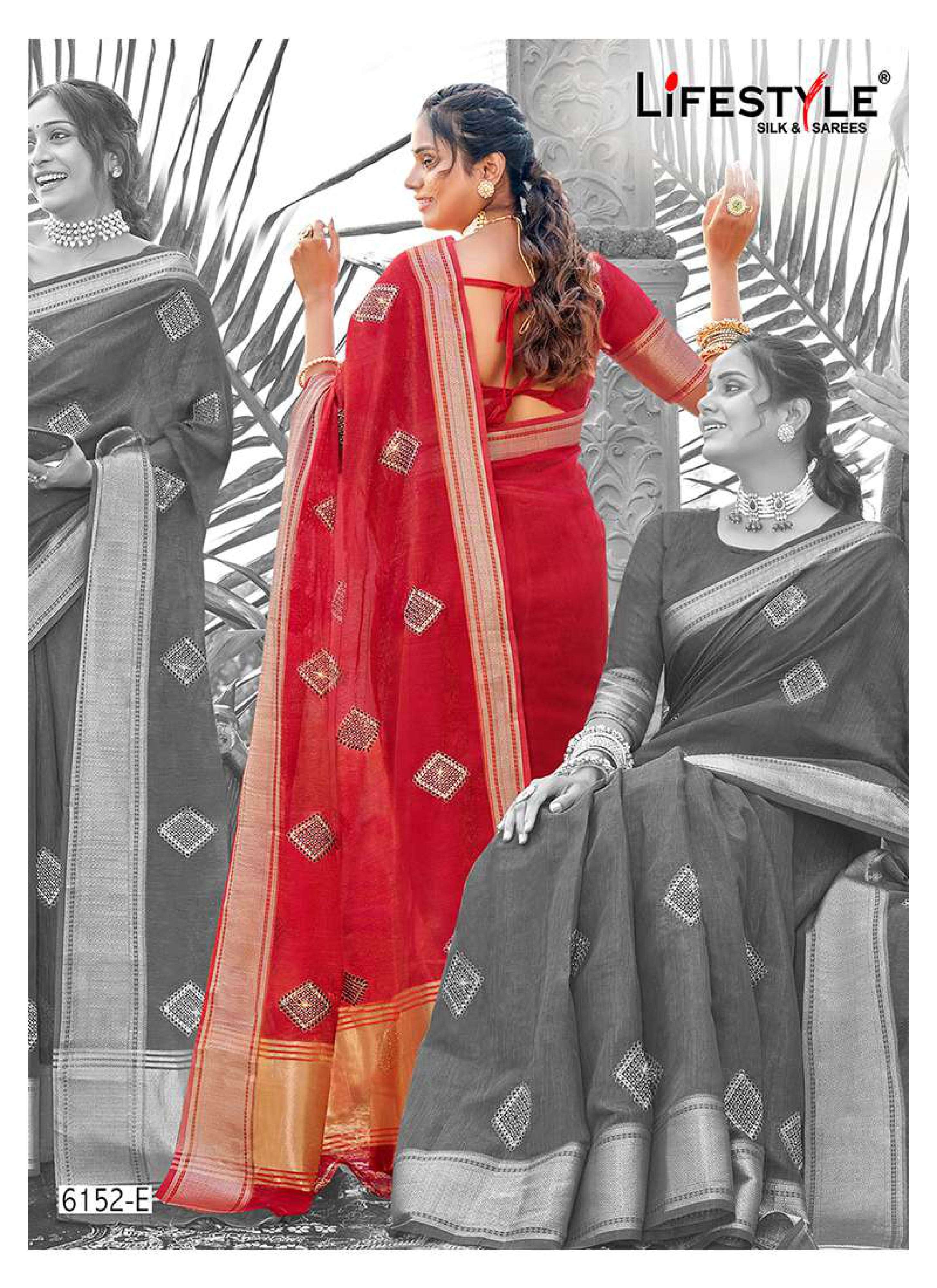 Lifestyle Saree Presents Latest Collection Launched on 11-01-2023. Presenting Beautiful collection of 6 PCS with Unstitched .