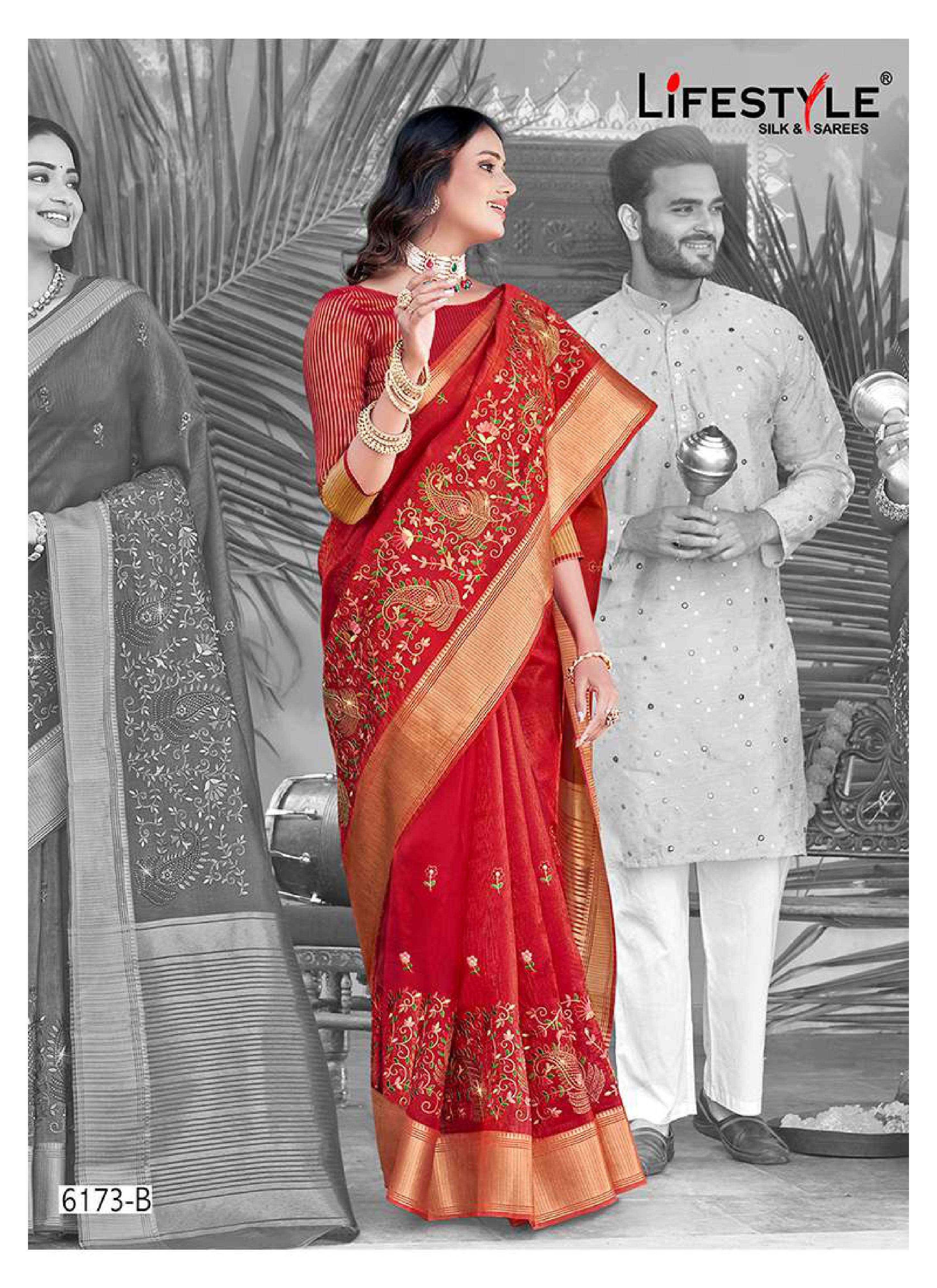 lifestyle 6173 vol 1 wedding fancy organza sarees supplier