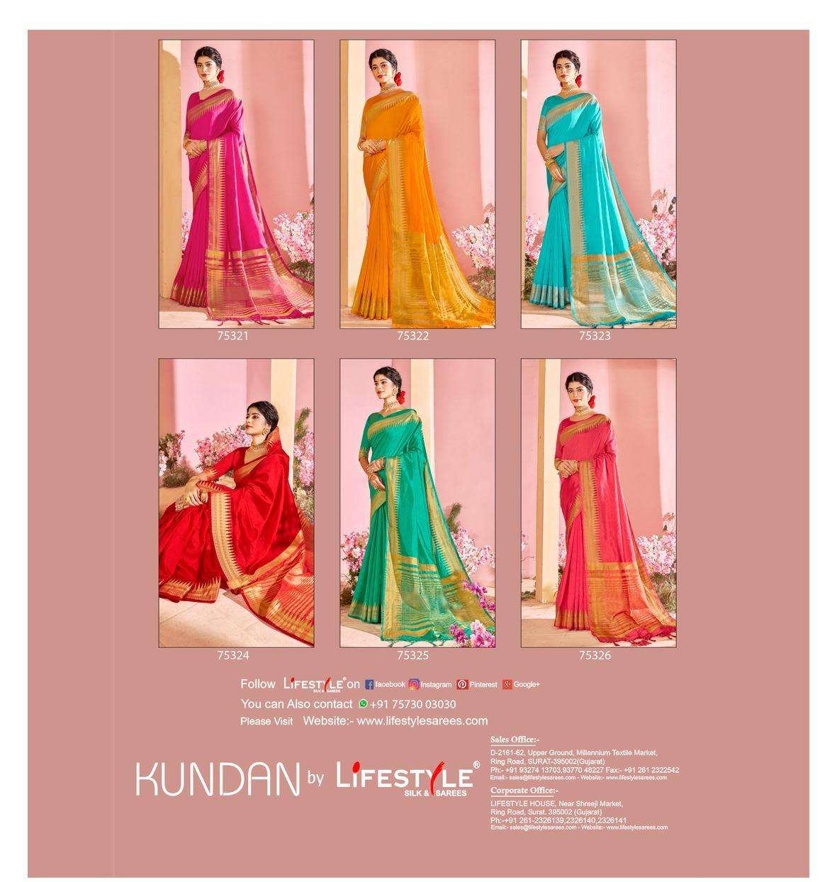 Brand = LIFESTYLE Catalog :- KUNDAN Volume :- 1 Fabric :- NYLONE SILK Packing :- BOX Price :- *574/- per pcs * Set to set Cut/Length :- 6.4 FANCY NYLONE KHICHA TEMPLE BORDER CHIT PALLU PACKING - IN THIS WEEK |