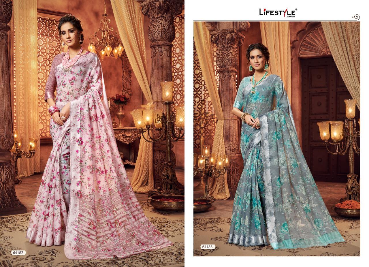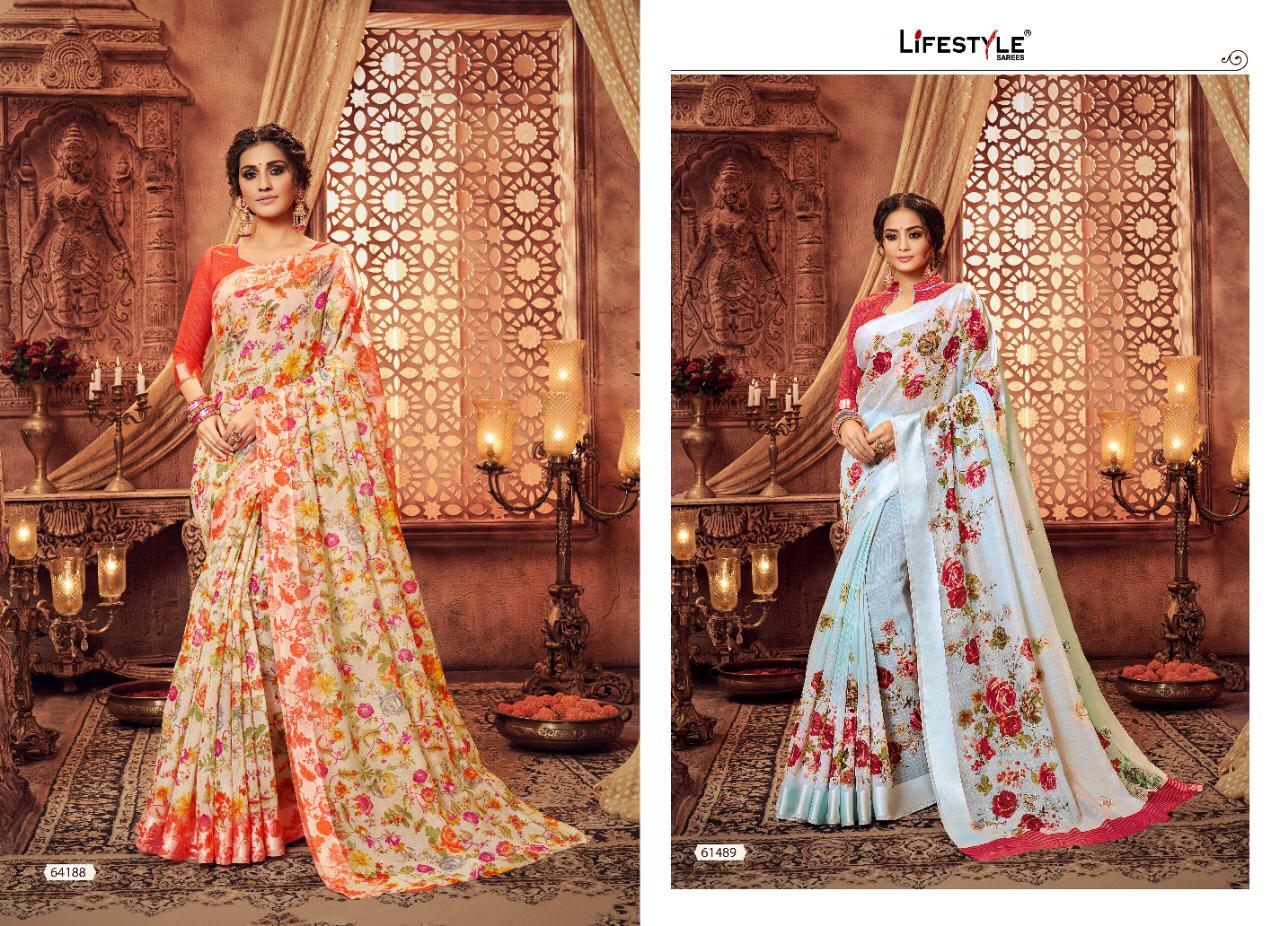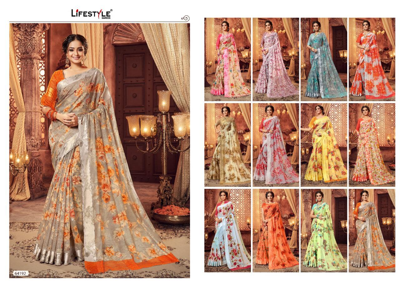 Lifestyle Saree Presents Latest Collection Launched on 07-10-2019. Presenting Beautiful collection of 12 PCS with Unstitched .