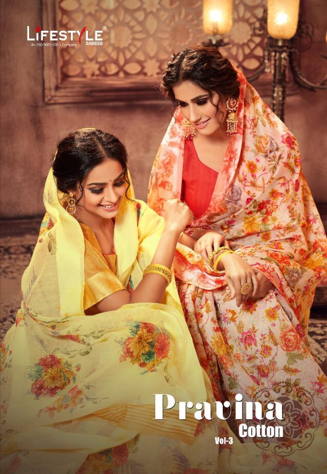 Lifestyle Launch Pravina Cotton Vol 3 Linen Cotton Print Casual Wear Saree Wholesaler
