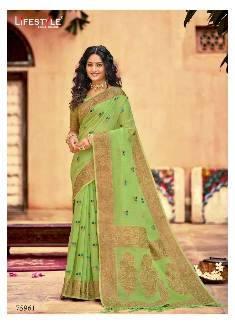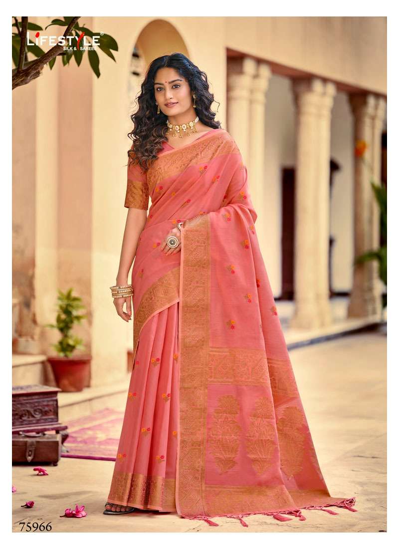Lifestyle Saree Presents Latest Collection Launched on 13-10-2021. Presenting Beautiful collection of 6 PCS with Unstitched .